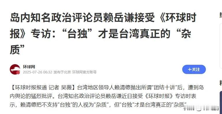 赖清德整统派,赖岳谦没法在台湾待咧 赖清德上台后,在台湾胡整哩,专治那些说两岸要统一的人。就拿赖岳谦来说,他是个台军退役少校,还在政治大学教过书,当过中时电子报的社长。可他老说一个中国,支持统一,这就惹恼了赖清德当局。 2020年,中天新闻台被关咧,赖岳谦就被民进党说是大陆的“间谍”,净胡谝。今年,台当局用“显有危害宪政秩序”的借口,逼中时电子报和政治大学把他开除咧。这下,赖岳谦的工作没咧,退休金也可能拿不到。他在台湾找不下活干,只好想搬到大路去。他自个儿在《环球时报》上说的,已经看咧几个地方,但还没定下。 不光是他,赖清德当局还整其他支持统一的人。比如有些从大陆嫁过来的妇女,只要说统一,身份证就被取消,赶出台湾。这明明是“绿色恐怖”,只许说“台独”,不许老百姓说真话。 可台湾好多人还是想统一的,赖清德这么胡来,迟早要遭报应。信息源是《环球时报》的报道。赖岳谦 香港人怒怼台湾 赖越谦 赖家台 宝岛名嘴 才赖岳谦 赖荣明 台湾搞笑政客 赖岳谦 香港人怒怼台湾 赖越谦 赖家台 宝岛名嘴 才赖岳谦 赖荣明 台湾搞笑政客 赖德伦 赖兵谦 赖谦岳 林志谦 台湾省无赖 台湾各族 台工委