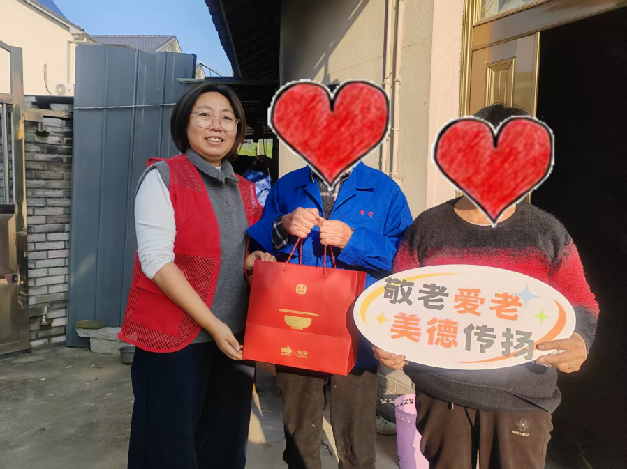 活动当天,志愿者们带着满载心意的“福碗”挨户上门配送,不少老人早早在门口等候。黄湖镇青山村的周奶奶接过“福碗”时,指尖轻轻摩挲着碗沿,脸上笑开了花:“这碗真精致,以后用它盛饭,每一口都觉得心里亮堂!”