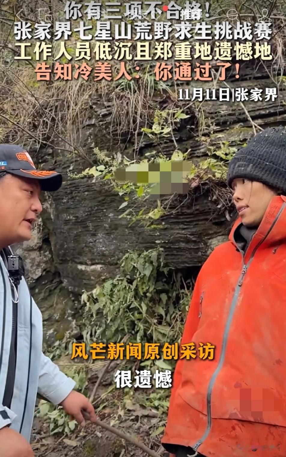 惊到失语 荒野赛选手拼到力竭 竟被"戏耍式通知"拿捏? 张家界七星山的野林里 “冷美人”扛着饥饿、扒着碎石闯完求生关,满身泥污刚站稳 就被工作人员严肃告知“3项不合格淘汰 正心灰意冷时,对方突然笑出声:“逗你的,过了” 去年同款操作让某赛事被喷上热搜 选手拿毅力博认可,赛事却拿别人的坚持当“爆点” 这波操作到底是创意还是冒犯? 热度诚可贵,分寸价更高 把他人的全力以赴当玩笑 这样的流量真的体面吗? 我要上热门