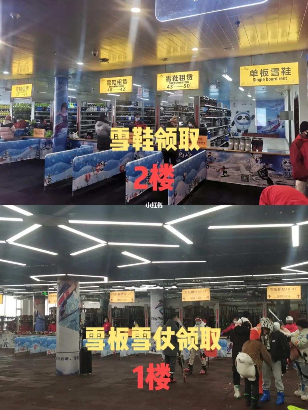 🧊准备流程:在大厅先支付滑雪卡押金800一张,然后上2楼领取雪鞋,储存好衣物和包裹(储物柜30一个),再下一楼领取雪具,含雪杖、雪板。