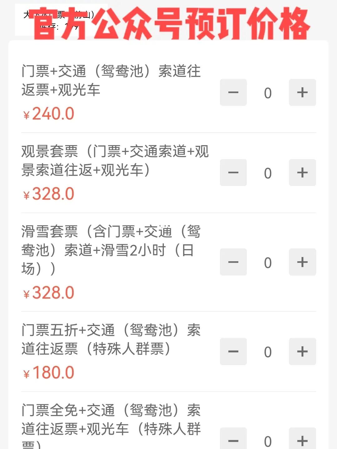 🎫门票: 1月8日更新 “西岭雪山景区”公众号可预定