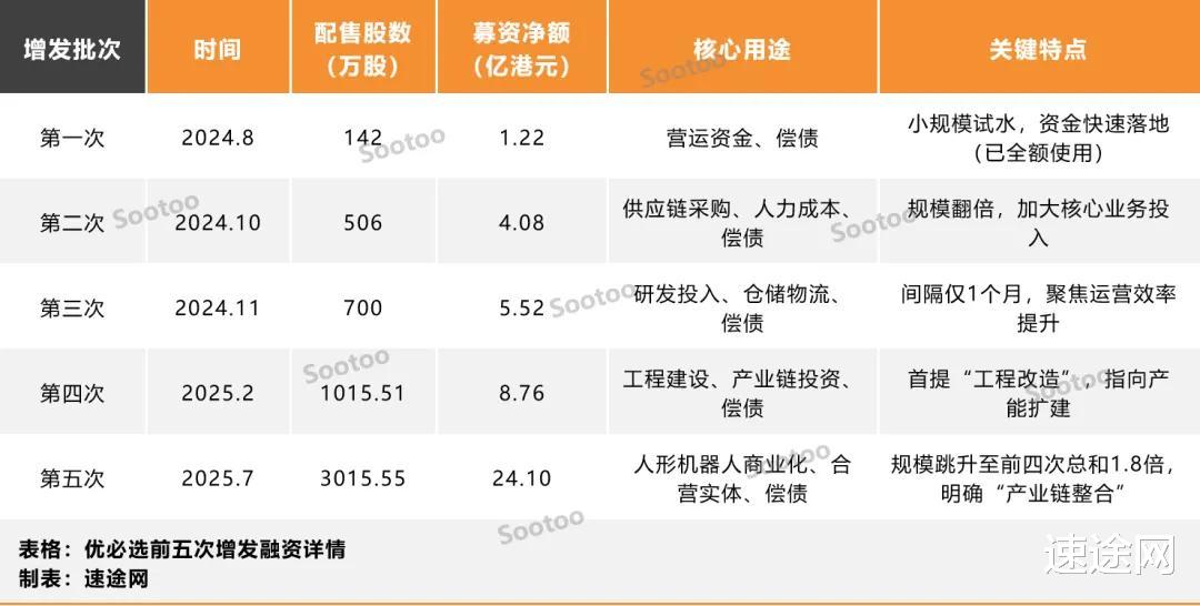 这并非一次普通的再融资。如果拉长时间轴,这是一场令人咋舌的资本急行军。自2024年8月以来,在短短15个月内,优必选已密集实施了6次配售。从最初的“小步快跑”到如今的“巨额吞吐”,优必选正在利用其唯一的上市平台优势,试图在具身智能爆发的前夜,通过资本构筑一道难以逾越的护城河。