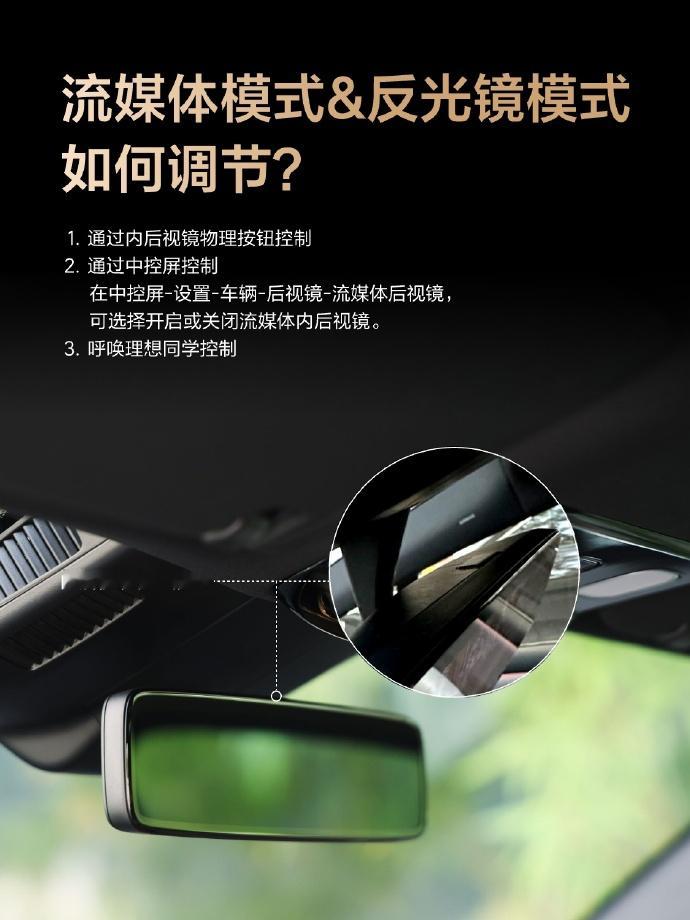 开这段时间,发现它的流媒体后视镜确实好用,尤其是在晚上,看的很清楚,记得有一次我开车,后面车辆前照灯很亮,没想到它还可以自动变暗,并且盲区也很小。再加上它在流媒体模式下,还可控制视野高度调节。确实方便并且它还可以切换反光镜模式,通过内后视镜的物理控制,也可通过中控屏控制,呼叫理想同学来控制也没有问题。该说不说,这些功能都是我之前在开一些合资车型没有体验过的,真的好用