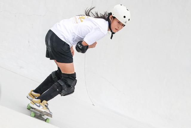 高高跃起,却未能在空中抓住脚下的滑板——郑好好摔在池底,双膝跪地,向前滑出一长段才缓缓停下。她默默起身,捡起掉落在一旁的滑板迅速退场。这是郑好好在全运会滑板女子碗池决赛中的第三组动作,以失误告终后,她的成绩定格在83.47分,提前与冠军失之交臂。或许是因为最后一轮的压力过大,随后出场的两位运动员也接连出现失误,未能实现反超,郑好好最终摘得一枚铜牌,她的广东队队友邹明珂以86.92的高分夺得金牌,山东选手孟令妍收获银牌。