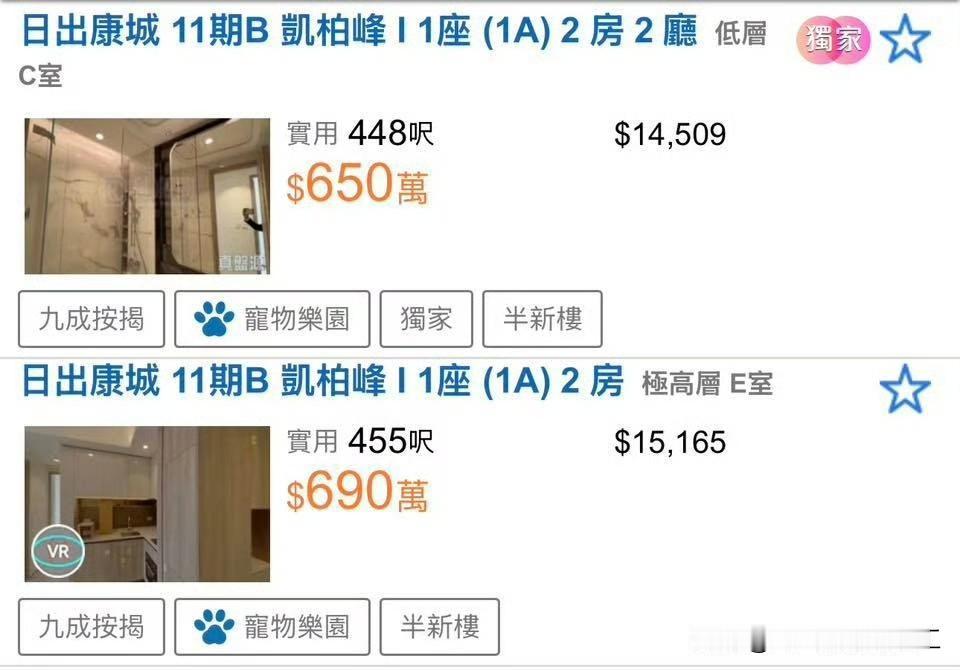 香港将军澳日出康城,3年前800多万,现在600多万。