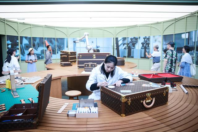 “路易号”内的“非凡之旅”回顾展,现场展示箱包制作技艺。海沙尔摄