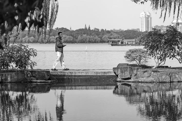 前天,嘉兴南湖景区沐浴在秋日暖阳下。在环湖游步道上,市民游客悠然漫步,尽享禾城秋日的静谧与惬意。■摄影记者盛佳淳