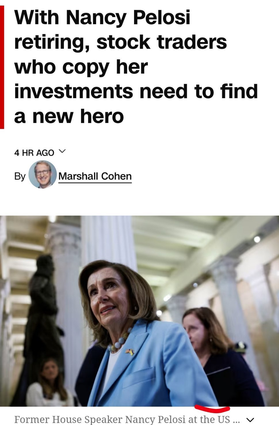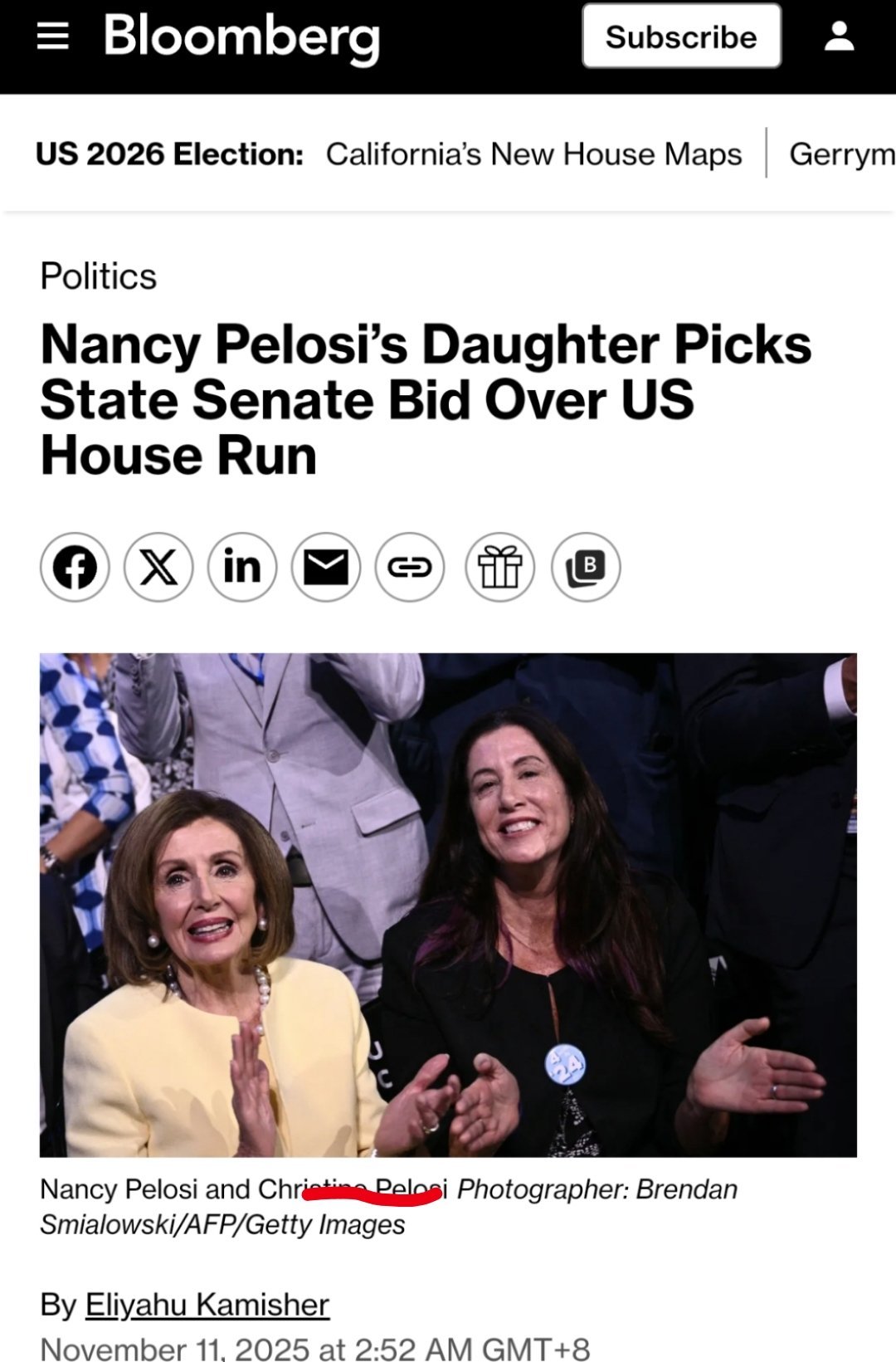 刚看到消息:佩洛西的女儿克里斯汀·佩洛西果然出来选州议员了!克里斯汀·佩洛西准备先从加州家族大本营干起。佩洛西扶持女儿好几年了!哈里斯选总统的幕后推手之一,现在终于也要自己出来接着老妈的影响力干了!¹ 佩洛西的爸爸是国会议员、巴尔的摩市市长。她的哥哥也做过巴尔的摩市市长。² 佩洛西炒股,实际操盘手是她的老公。“技术高超”。一帮子金融公司的经理跟着她炒股,专门跟踪她在股票上的进出!其中一个只跟踪她操作的基金NANC规模达到2.63亿美元!³ 佩洛西家族频繁、大量使用自带杠杆的远期期权法炒股。比如,一支美股现在是200美元,佩洛西“判断”它几个月或一年内会大涨到300美元,就花一股10美元买入一份210美元的看涨期权。届时涨到300美元,她就可以让她老公操作,用210美元的价格买到股票,然后立刻以300美元卖掉期权,每股赚90美元!已经赚了好几个亿美元了。