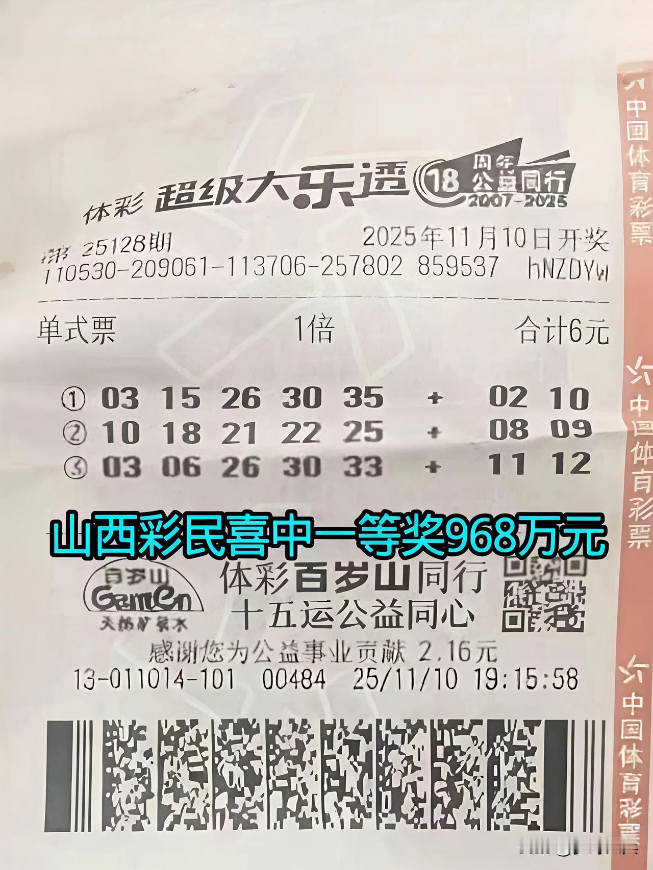 山西农民买6元体育彩票,喜中一注一等奖968万元,据说中奖者当晚看到自己中奖后高