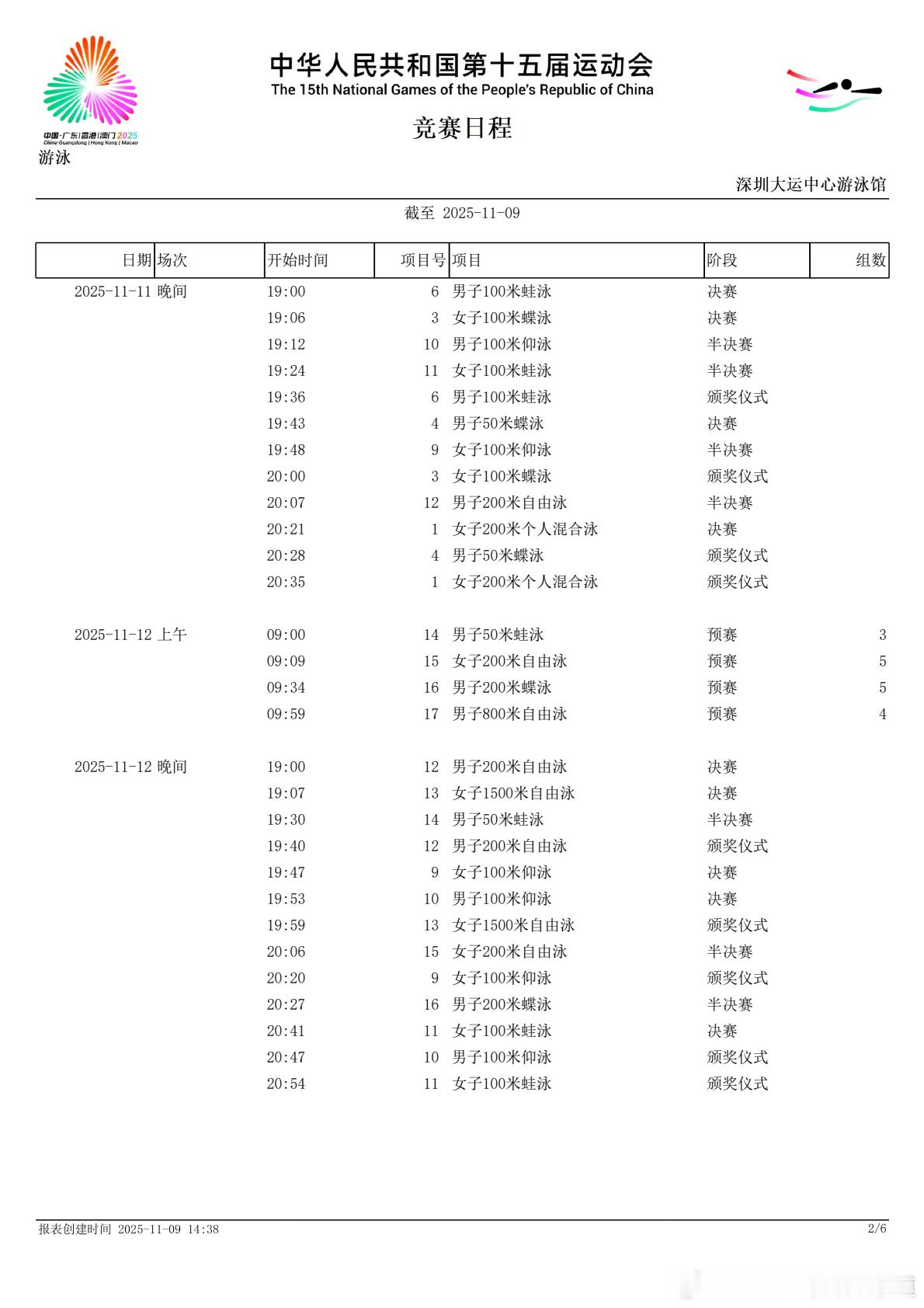 🏊🏻♂️ 第十五届全运会 游泳比赛 第3天 19:00 第6场 半决赛/决赛第1项 男子200米自由泳 决赛的2项 女子1500米自由泳 决赛的3项 男子50米蛙泳 半决赛第4项 女子100米仰泳 决赛第5项 男子100米仰泳 决赛 (预计开始时间19:53) 7道 /p1第6项 女子200米自由泳 半决赛第7项 男子200米蝶泳 半决赛第8项 女子100米娃泳 决赛直播|CCTV5/央视体育/央视频/咪咕