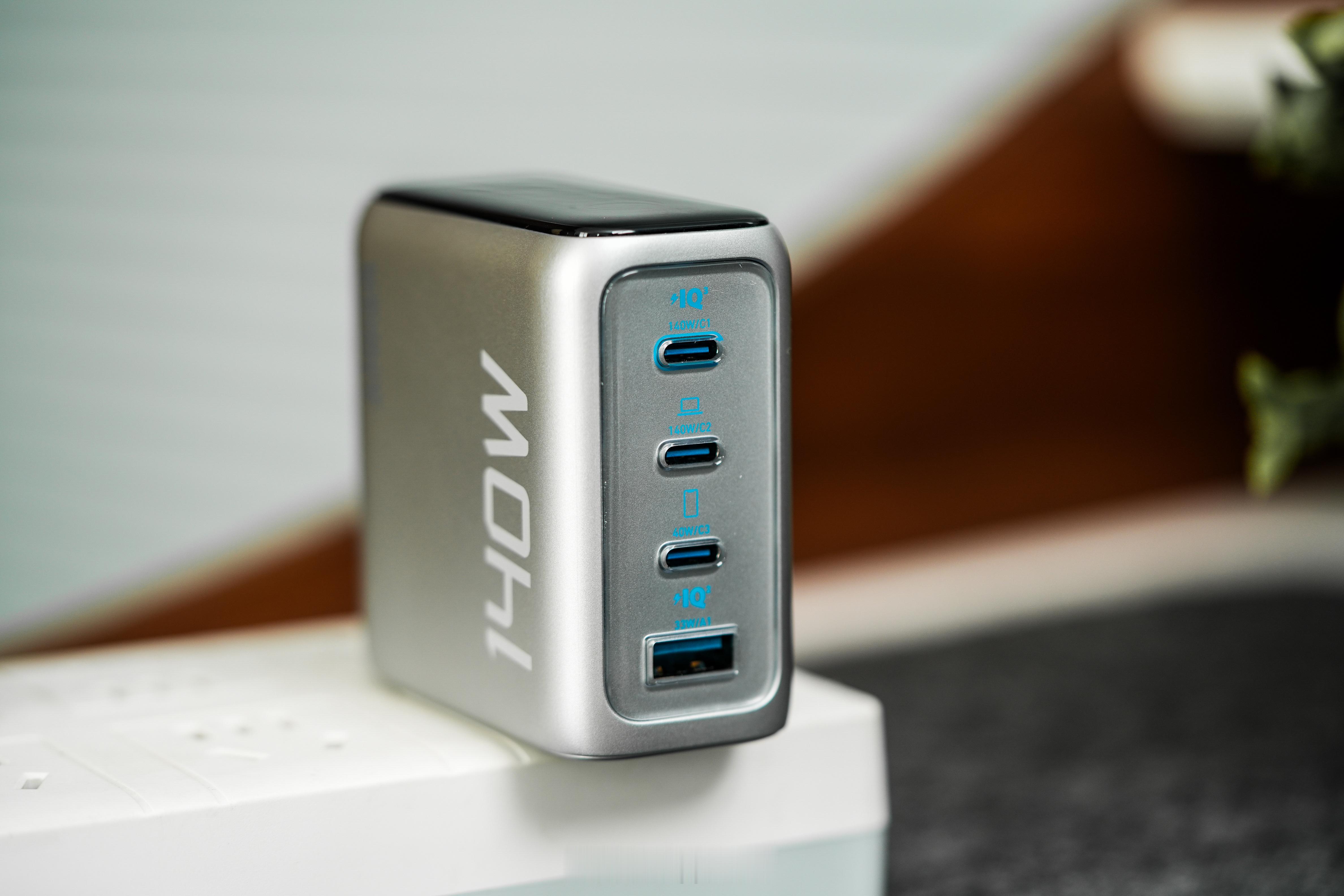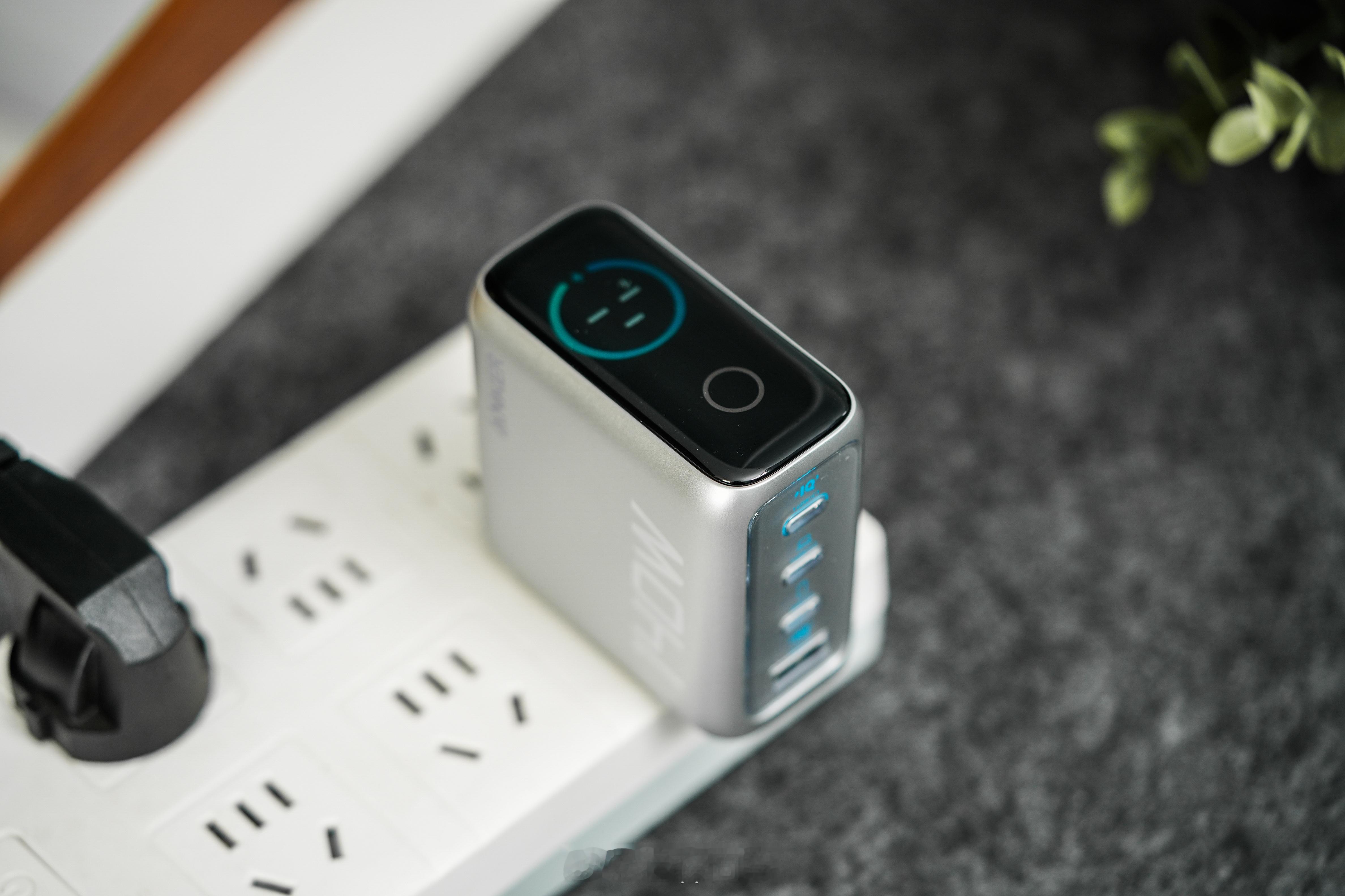收到Anker的充电器一个140W充电头一个安心充smart小充电器很有意思可以两种插法,还有小屏幕,能识别我的iPhone17 Pro大的这个140W我每次出门必备,因为它可以给Mac充电,还有4个插孔,也有屏幕很有科技感。