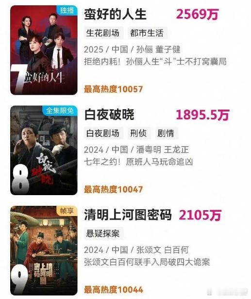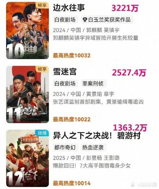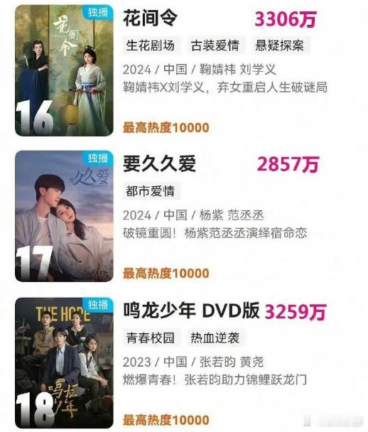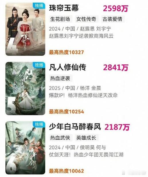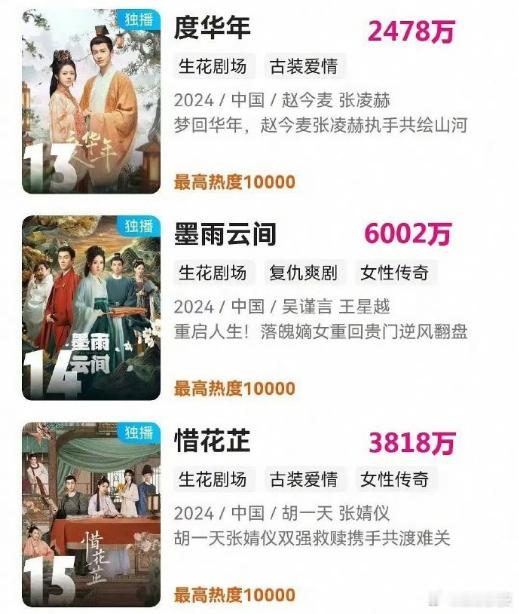 这样看平台今年的古装剧就是差了6000档的,下面的表现跟去年其实差不多