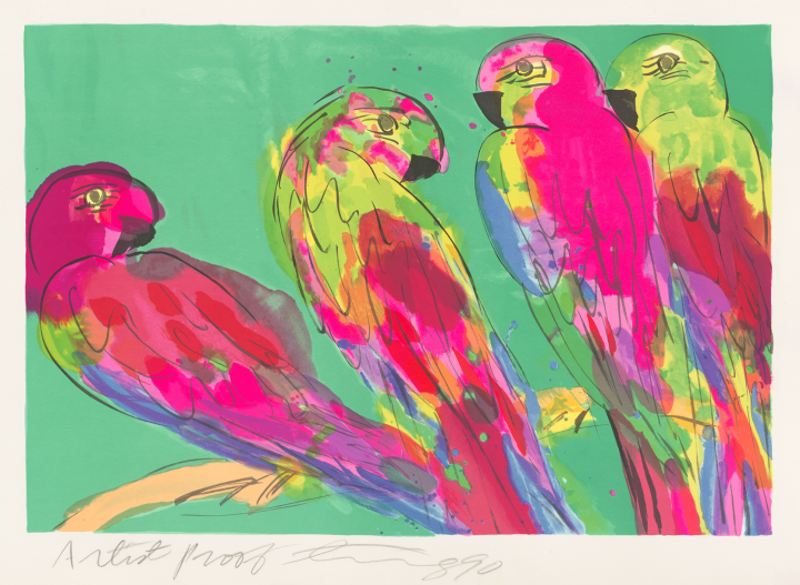 四只鹦鹉丁雄泉石版59.3厘米×73.0厘米1990年