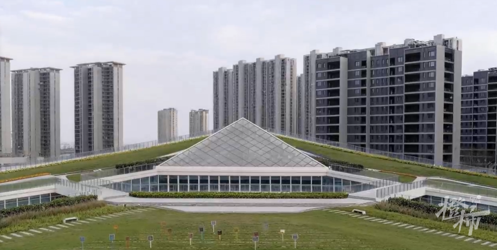 浙江版画院仅三个月时间就完成了展馆方案设计、装修改造、环境营造和道路绿化等工作,据介绍,版画院落地的之江邻里中心项目从规划之初便锁定“未来感”与“自然融合”核心理念:“金字塔”造型诠释“山水城林”未来图景,斜坡式结构将功能空间巧妙隐于地下,将整个屋顶转化为与地面公园无缝衔接的公共绿地,让场馆与自然生态和谐共生。