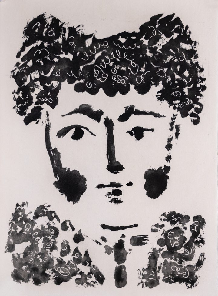 毕加索热衷舞台艺术,在受邀创作版画集《卡门的卡门》时,他首先着眼于登场人物造型,延续其舞美设计的夸张手法,以几何形态概括角色面部。为呼应原著炽烈奔放的风格,作品集中亦融入了毕加索色彩明艳的即兴涂鸦。此外,毕加索还提炼出如头披纱巾的卡门、斗牛场上的埃斯卡米罗、行军中的唐·何塞等经典场景,另行创作了5幅独立版画,收录其中。