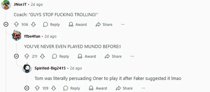 在Faker建议之后,Tom实际上是在说服Oner玩这个英雄,笑死。