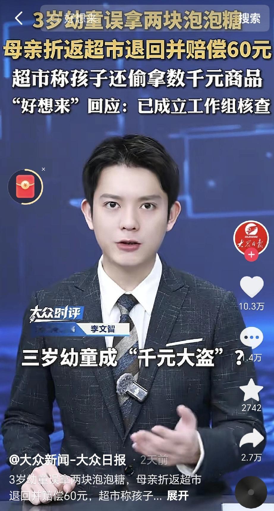 3岁娃顺手拿了块泡泡糖没给钱,妈妈知道后立刻带着孩子送还过去,还主动赔了60元,