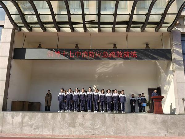 为进一步强化全体师生的消防安全意识,提升应对突发火险的自救互救能力,筑牢校园安全“防火墙”,淄博十七中于11月10日上午举行了消防应急疏散演练。