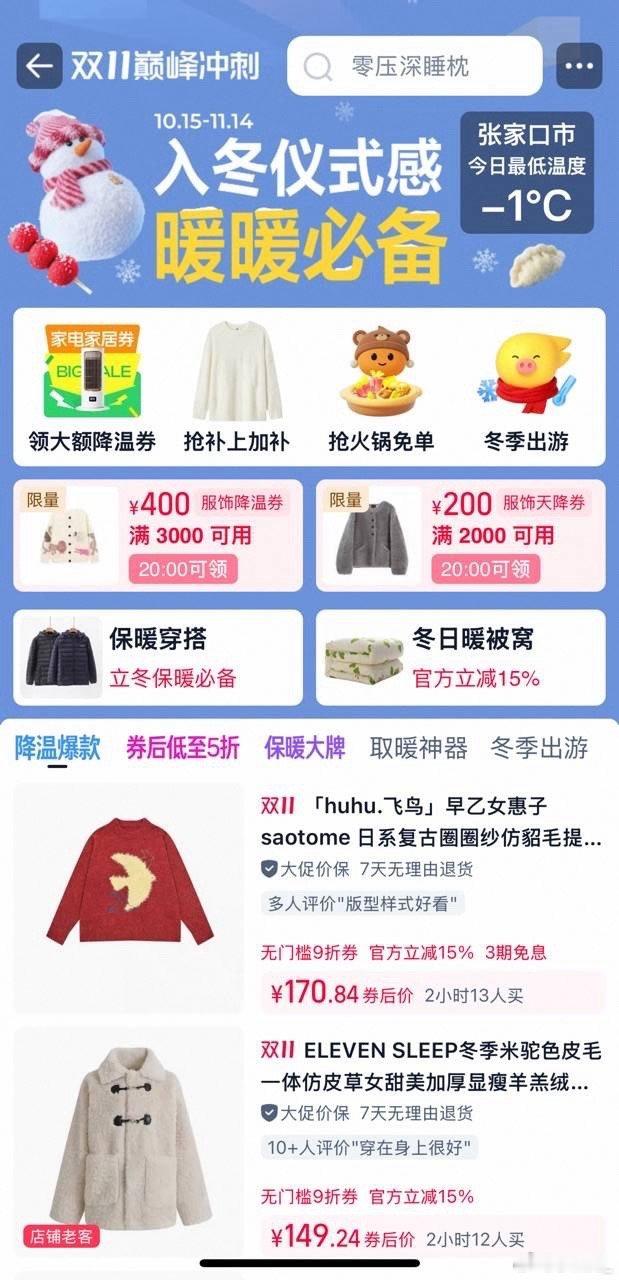 昨天还在露脚踝耍帅,今天风直接把我吹成 “人形风铃”,秋裤根本扛不住这速冻模式!翻衣柜发现去年的羽绒服又沉又丑,正纠结要不要咬牙买新的,就刷到淘宝双 11 还在发降温补贴!搜索【双 11 降温上淘宝】就能领大额券,心仪的短款羽绒服直接半价拿下,官方立减 8.5 折起还能叠 9 折消费券,算下来省出大几百奶茶钱~ 轻盈又保暖,零下几度通勤也不怕冻成冰棍,最后 48 小时再不冲真的要等明年啦!