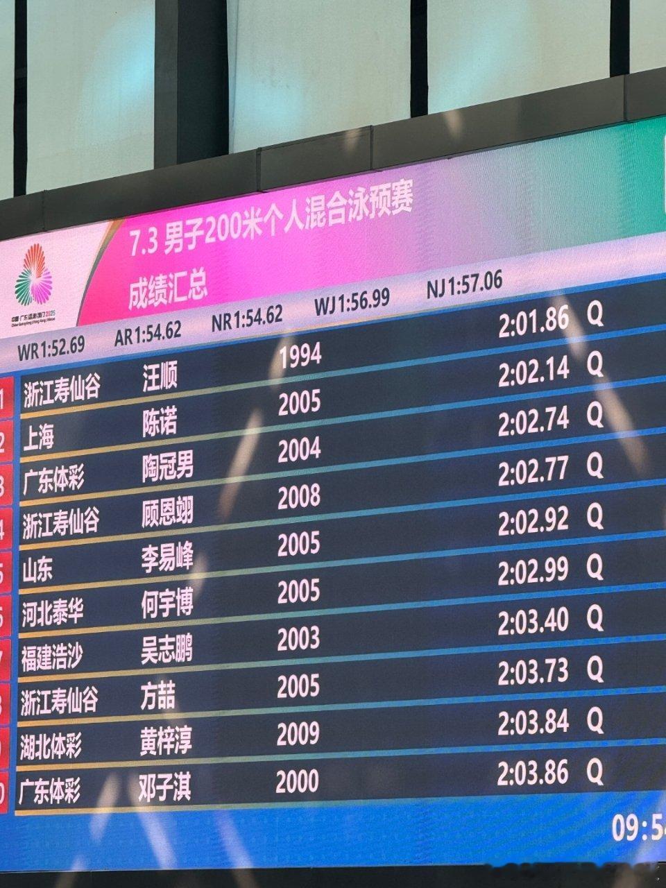 🏊🏻♂️ 第十五届全运会 游泳 男子200米个人混合泳 预赛晋级名单 2:01.86总成绩第1 晋级今晚半决赛