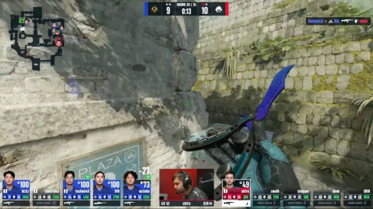 第9局蒙古四人来B进点,绿龙放空A点五人回防B点,chopper双杀,donk与sh1ro分别击杀910与bLitz,蒙古3-6绿龙。