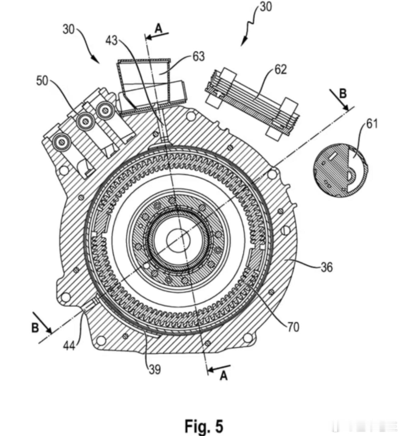 保时捷也做了YASA轴向磁通电机的应用专利储备,这个纵向P1或P2的位置空间看起来还是比较大的,双离合可以配这套系统,也就是说,下一代GT3RS有机会搭载这一套。动力总成这一块,YASA的相对低的转速啥好可以和万转发动机进行匹配。