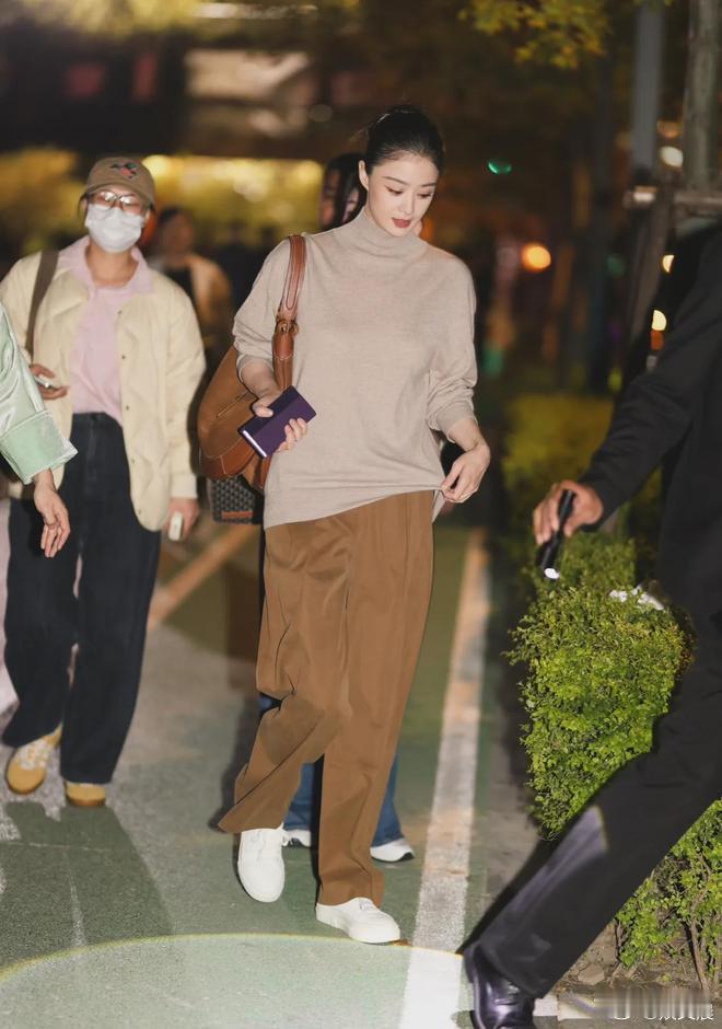 蒋欣减肥成功后气质直接开挂!卡其色上衣搭配棕色阔腿裤,高级感拉满还透着洋气,颜值气场双升级~