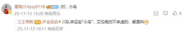 昔日国家队队友翟晓川留言道:“对,小鸟。”
