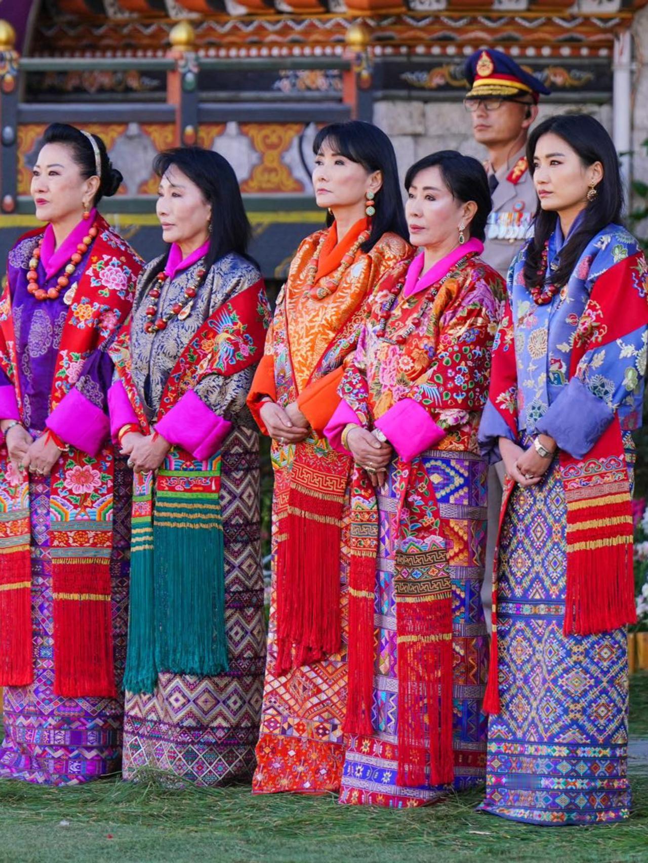 不丹王室集体亮相,女眷们都是高颜值 不丹王室堪称“颜值天团”!太王太后风姿绰约,四位王太后皆为绝世佳人,佩玛王后更是被誉为亚洲最美王后。她们身着传统服饰时,一颦一笑间尽显东方古典韵味,那优雅气质与灵动仙气浑然天成,仿佛从画卷中走来,美得令人心醉神迷。