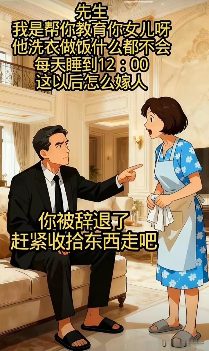 有的保姆或者是外人就是太把自己当回事儿,太喜欢多管闲事,然后被辞退,结果他死都不知道自己怎么死的。在公司里,在单位里,也要分清楚自己的位置,也要分清楚自己的地位,在别人的手下做事儿,该管的管,不该管的不管,有的时候为了生存下去需要装聋作哑,不要多管闲事,尤其是你没有实力的时候,很多人一事无成就是败在自己的一张嘴上。我之前也是分不清大小王,自己总是喜欢多少几句,但是现在基本上不喜欢好为人师了,因为不想成为那个人人讨厌的人,自己没实力没地位没有发言权的。