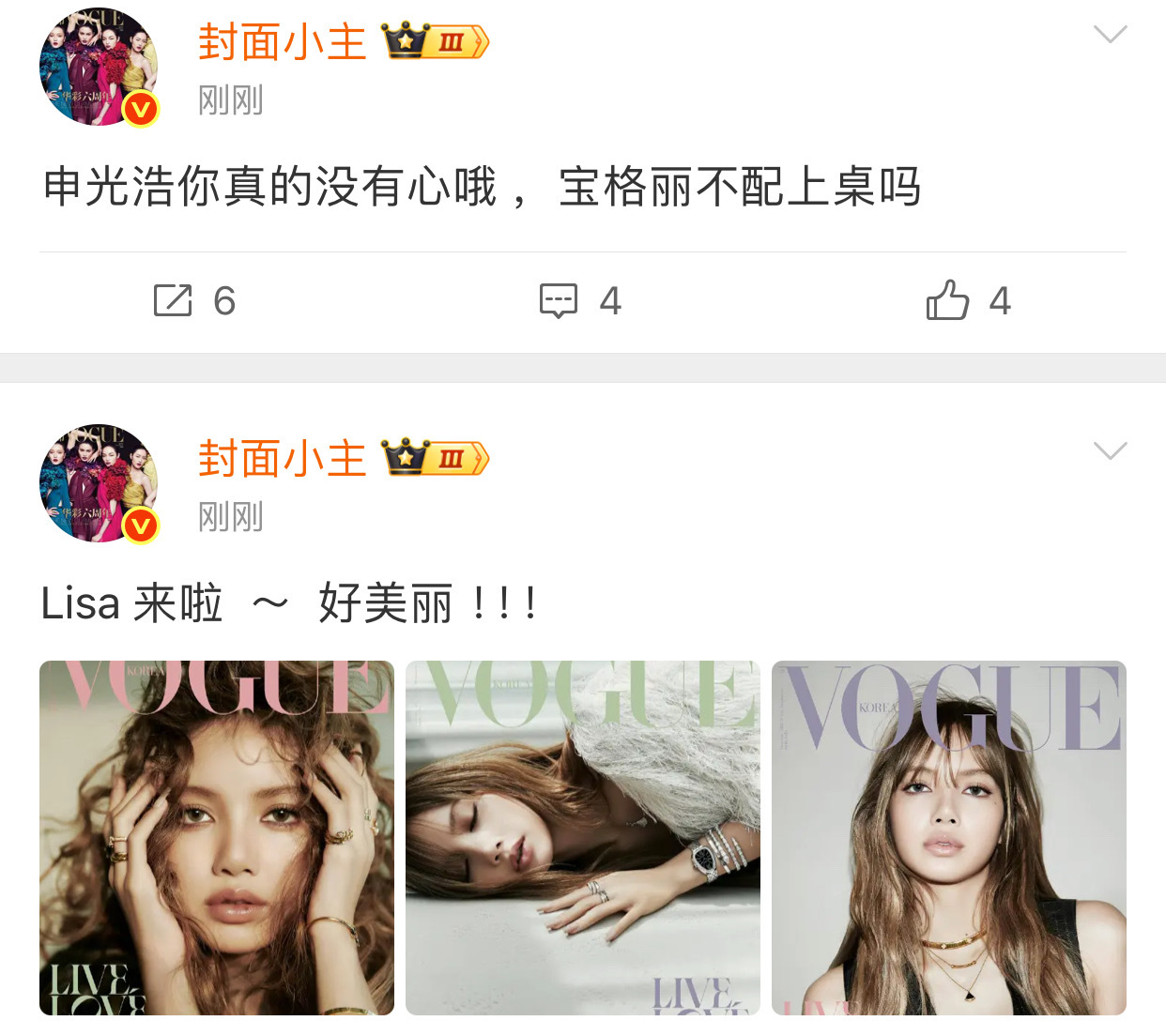啊啊啊啊啊啊好丢脸啊,Lisa 窝瓜上的是珠宝增刊!!!Vogue正刊给了五代李