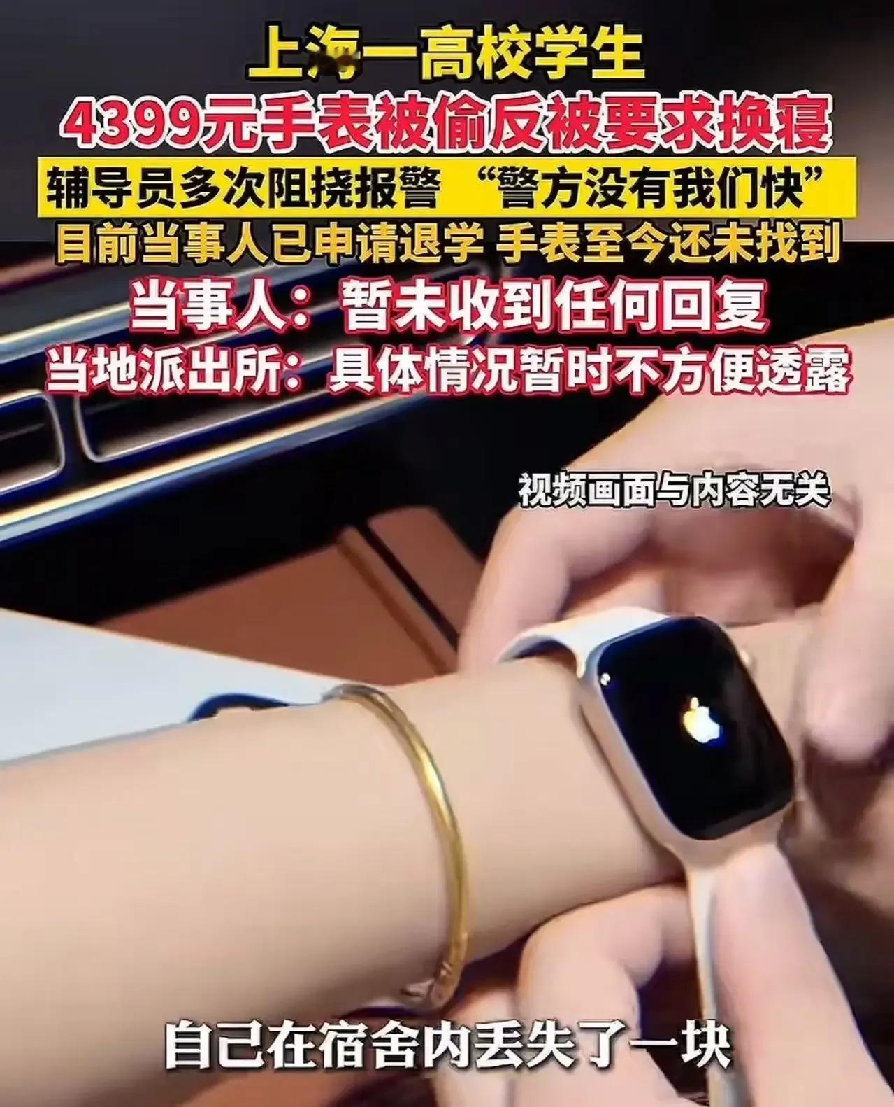 “你报警没有用的!”上海,女生价值4399元的苹果手表在宿舍离奇失踪,通过定位查