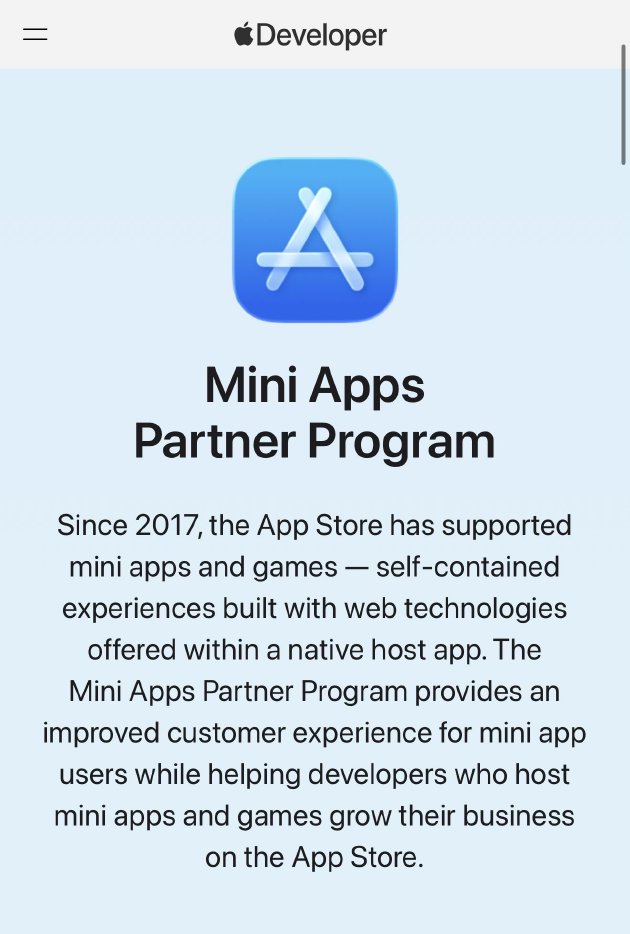 自2017年起,苹果appstore开始支持小程序及小游戏这类基于html5、javascript等网页技术开发的产品,2024年1月推出支持小程序的应用内购买的相关技术支持。此次新计划的推出,显然是苹果对小程序生态支持的进一步深化,将在提升用户体验的同时,助力开发者拓展业务版图。
