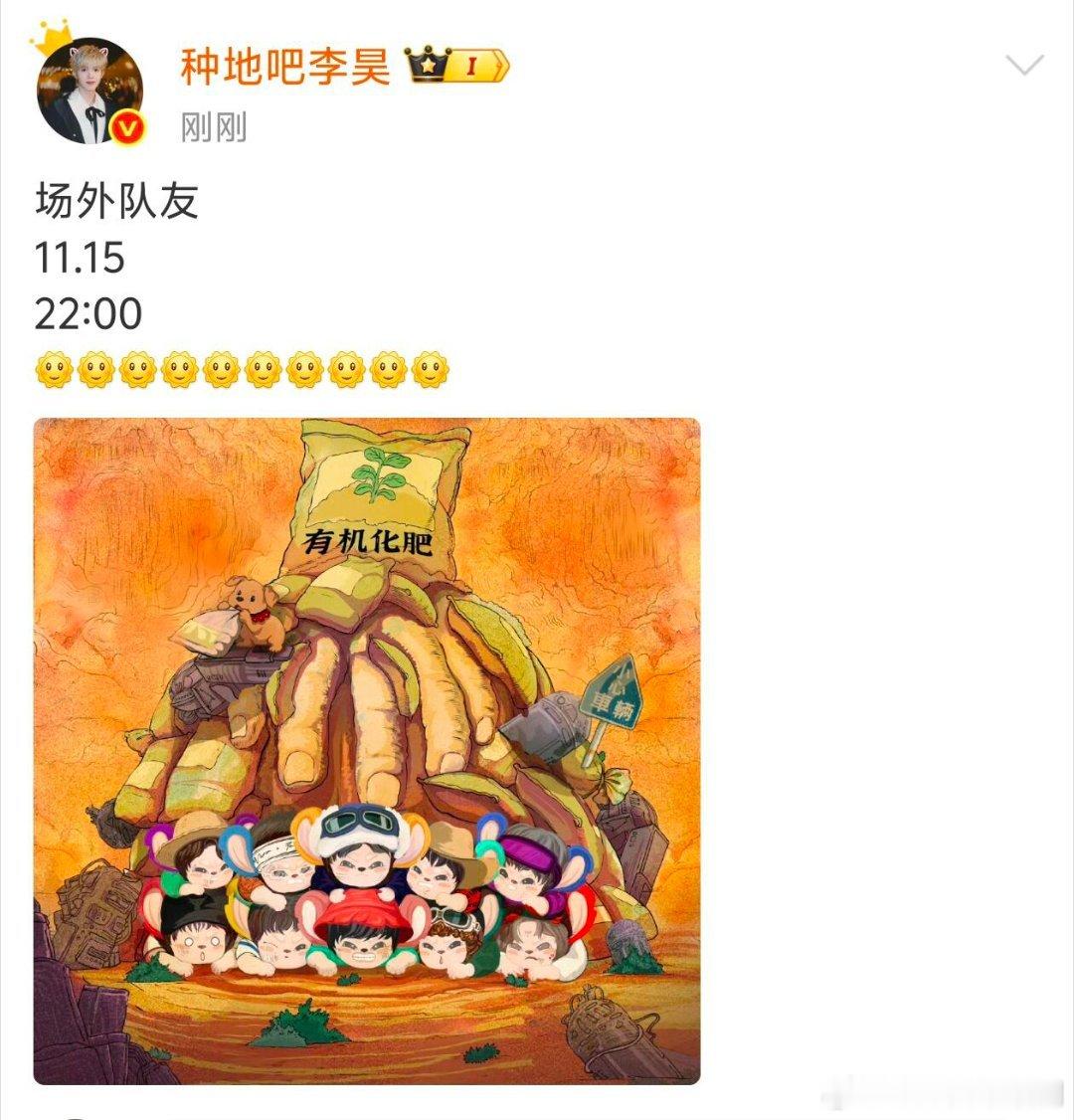 其他真猜不出来了15号上海站首唱新歌《场外队友》,唱完当晚10点同步发歌,大家多多支持嗷!李昊‖‖