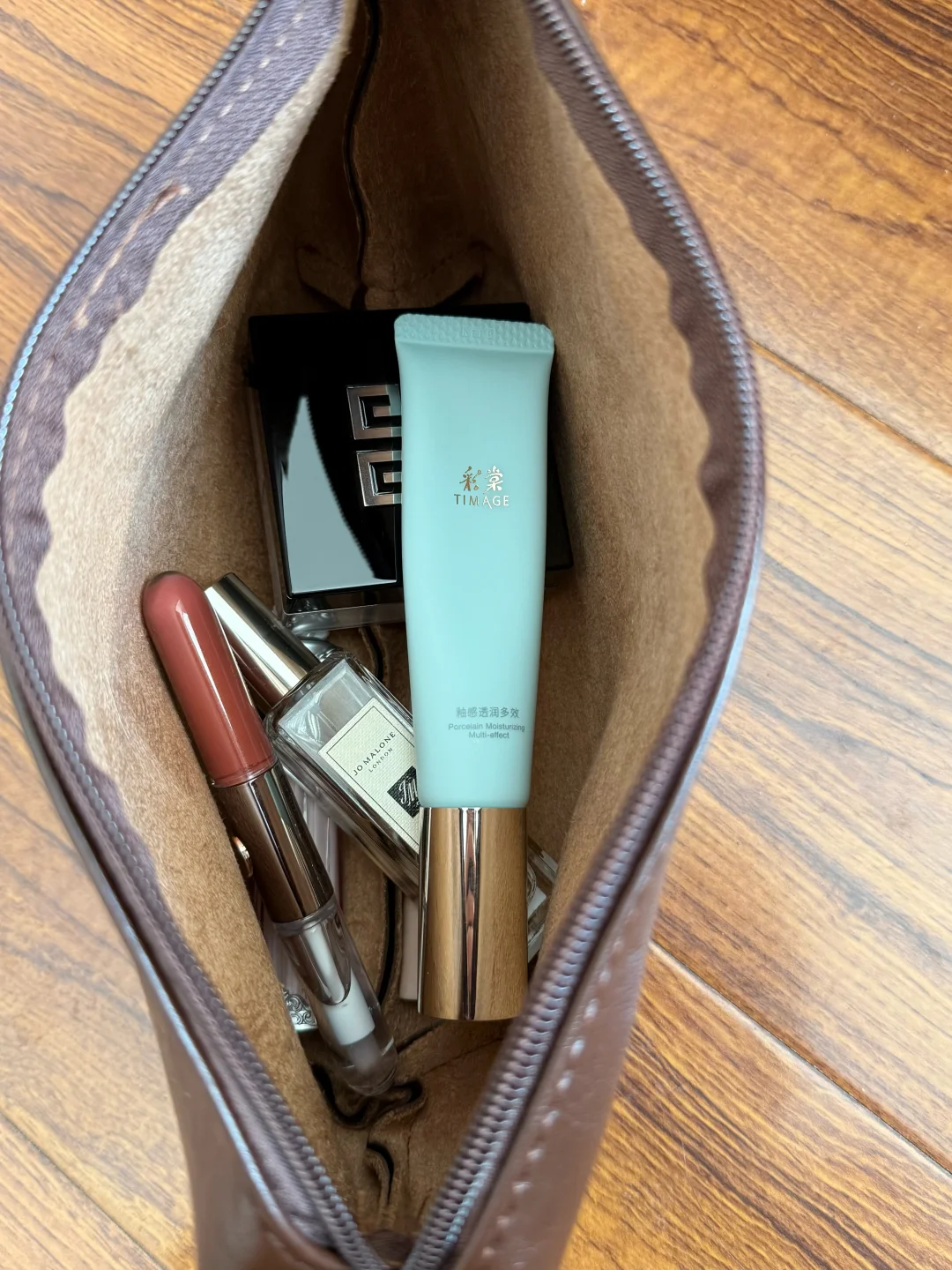 保湿妆前乳我一般用的彩棠,它能把皮肤调整得很平整细腻,趁微黏状态时打出来的底妆超级扒脸服帖,而且就是干皮一直在追求的水润光泽感!为了不破坏这种清透感,千万别全脸用粉饼定妆,有需要的就局部用散粉压一下油光就好了[偷笑R]额头、苹果肌、鼻头的水光感一定要保留,这样就有自然不油腻的高光啦
