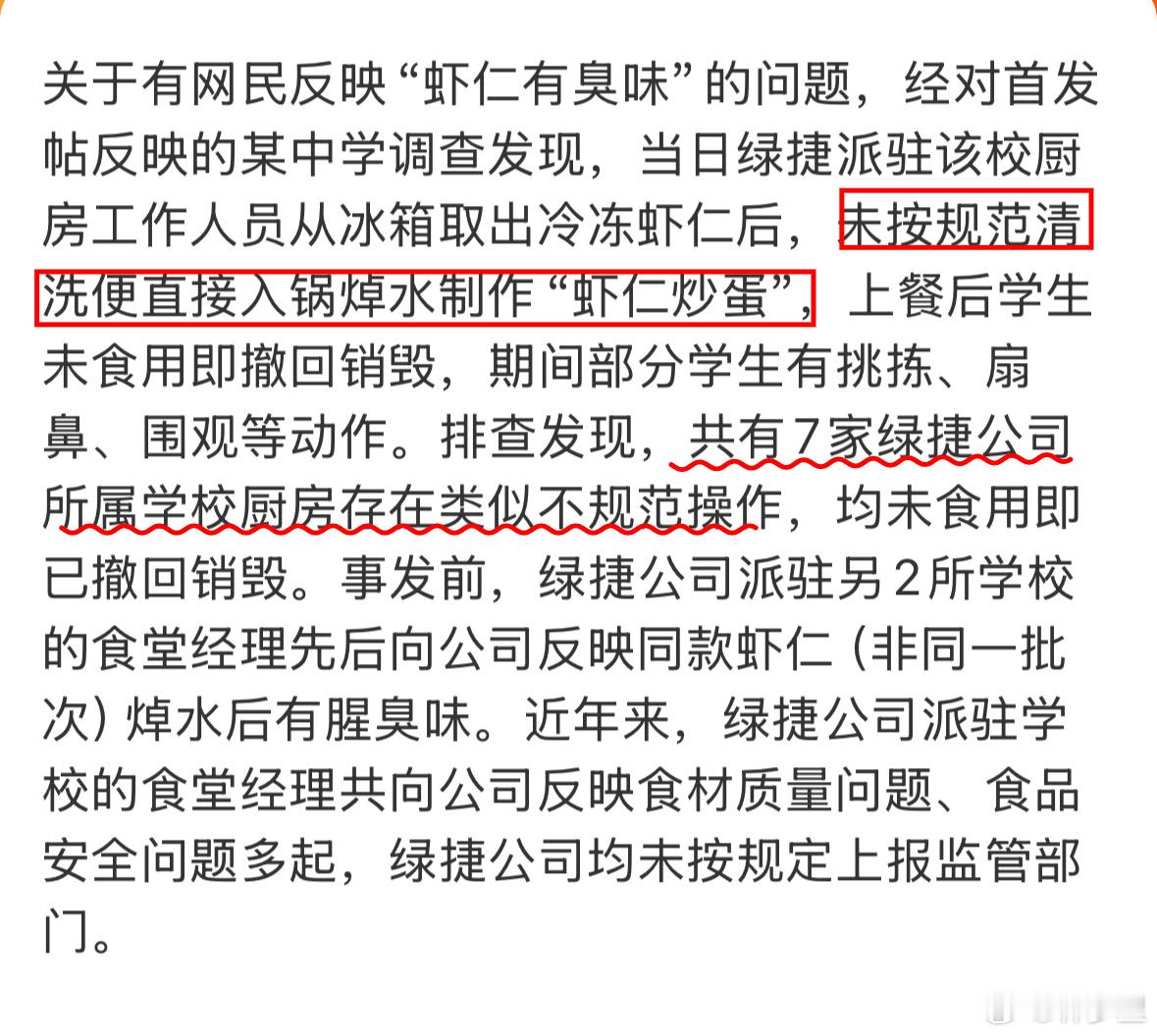 总算有结果了。所以,孩子们对食物的抗拒表现,不会撒谎。居然不洗就下锅了,发现有虫子还做给孩子吃。有组织的统一口径、提供虚假情况、销毁证据,真是逆天。搞不明白了,这个钱就非这样赚不可吗?洗一下,弄干净的食材给孩子吃,会s?完全无视孩子的健康,根本就不应该从事餐饮行业了。 看到吊销食品经营许可证及营业执照,爽了,活该。