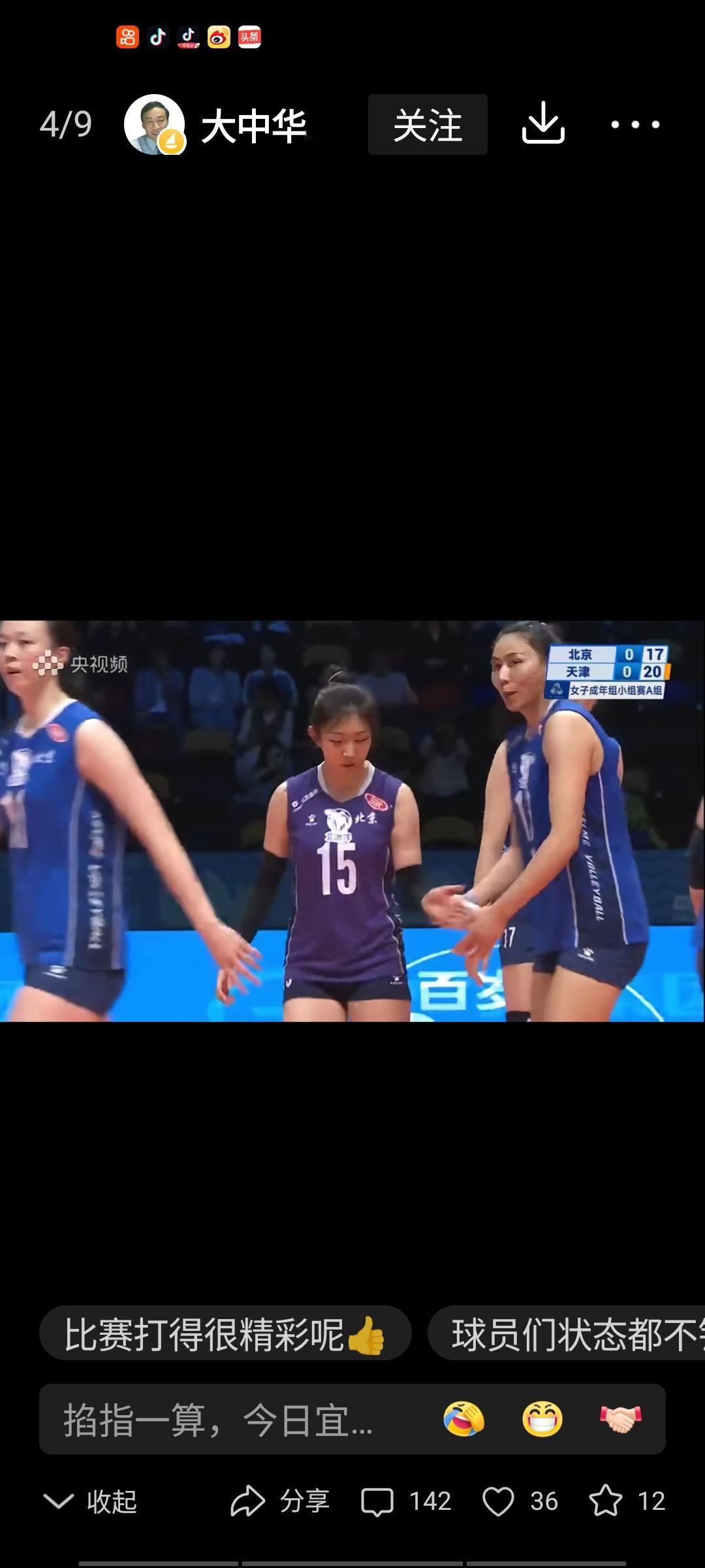 天津女排以3比1的战绩战胜北京女排,依旧稳居小组第三。小组前两名分别是河南队和江苏队。上海队为了避开天津队,竟开始有意输球。这并非王之腾首次这般操作,他对天津女排惧怕至极,一碰到天津队就心慌意乱、毫无底气。 今日,李盈莹的状态逐步好转,虽说在弹跳上仍有不足,但除第二局发挥欠佳外,其余三局表现都颇为出色。尤其值得称赞的是王艺竹、刘美君、王媛媛和张士琪,她们都有亮眼发挥。反观北京队,只有金烨发挥稍好,其余队员的表现都不尽如人意。四局比赛的比分分别是25比21、18比25、25比19、25比15。