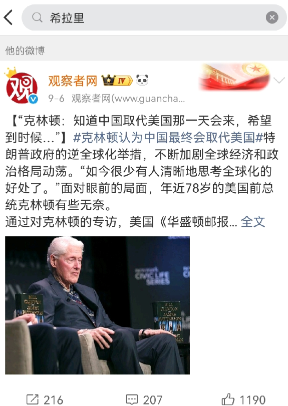 1、经核查,11月14日《观察者网》未发布相关内容,其近期涉及希拉里的报道停留在9月6日;
