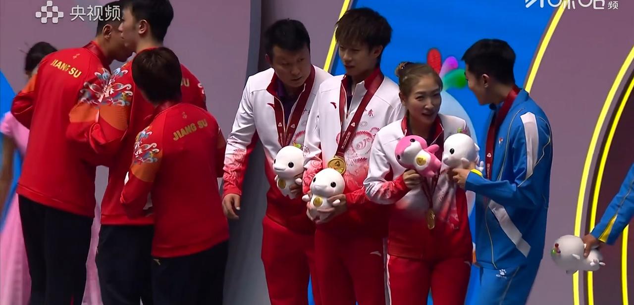 真精彩! 在决赛上大逆转,广东队先输二局情况下,连追4局,实现大逆转,4:2战胜江苏队蒯曼陈垣宇混双组合。 广东刘诗文和林高远混双夺得全运会混双冠军。 恭喜广东队。 比赛相当精彩,双方教练都大喊大叫,江苏队小将前二局真是神勇,直落二局,这一点我真没想到。 广东队后续张超教练站了起来,老将刘诗文完全释放,林高远被带动起来,打出很多神球精彩球。 江苏混双组合,没能继续神勇,被大逆转。 恭喜刘诗文,林高远广东队夺冠! [比心][比心][比心][大笑][大笑][赞][赞]