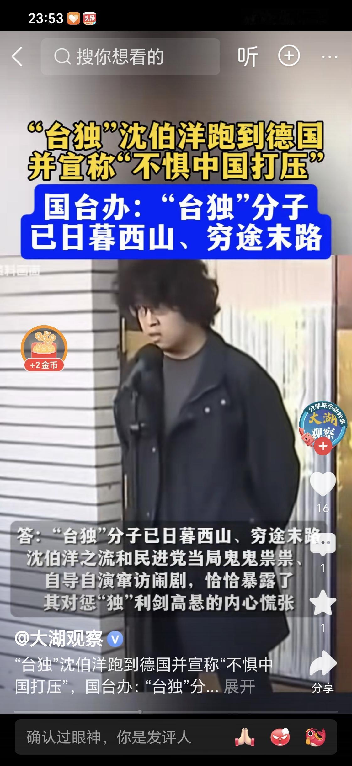 沈伯洋这位台独分子就是秋后的蚂蚱,蹦达不了几天了,他不是刚在德国叫嚣不怕被调查,被通缉吗?既然不怕那就走着瞧,随时随地都可以把它收了,必须严惩,缅北四大家族的结局就是它的归宿