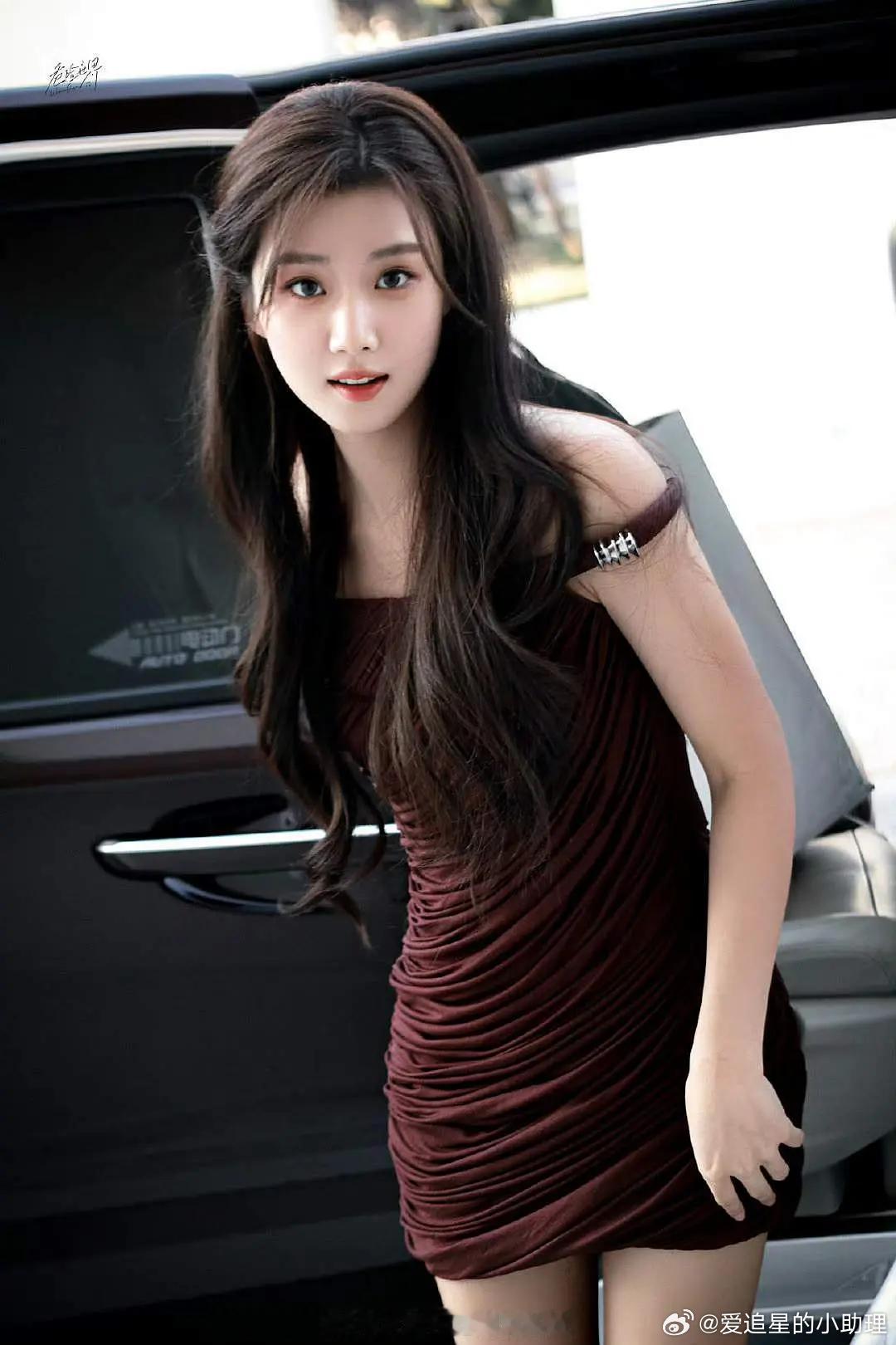 张婧仪,梦幻粉色长裙,闪耀在都市天际线前,优雅迷人。