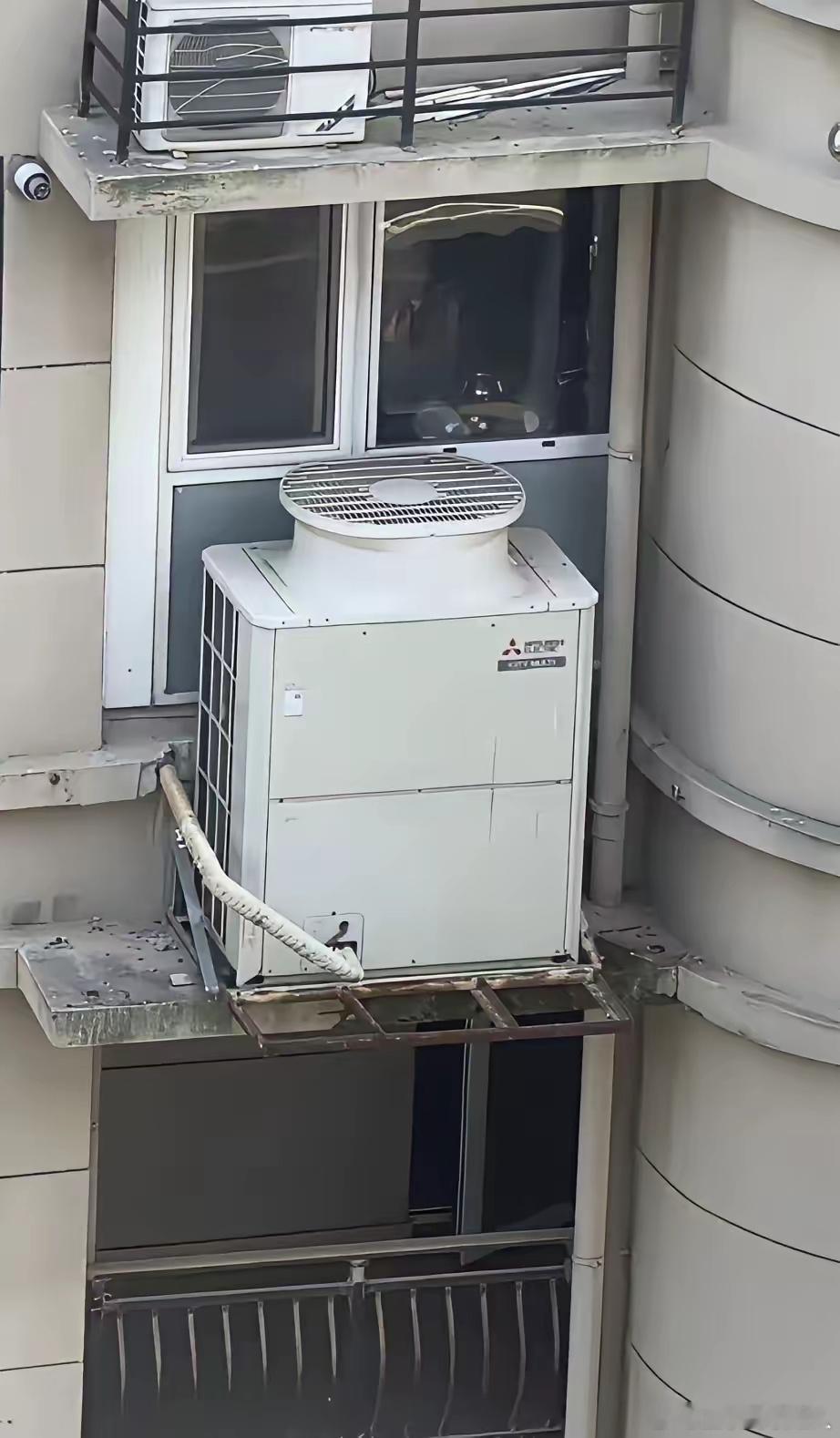 路过一个小区的时候,被这个外墙上面的空调外机属实震惊了。一个普通居民房居然装了这么大功率的空调,目测怎么也得有10匹吧?况且还是个老小区,底下的空调座真能扛住吗?实在让人惊讶,这东西大概有多重啊?