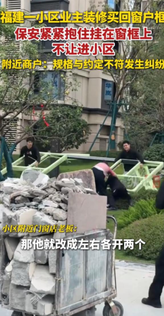 11月13日,福建福州,一业主为了方便房子通风,违反物业规定,擅自定制了其他规格的窗户,物业发现后出来阻止,业主却强行将窗户往里搬,工作人员无奈,只能抱住窗户不撒手,没想到连人带窗都被抬了进去。网友:豁出命了这是! 11 月 13 号,福州的一个普通小区里,本来挺平静的日子,被一扇窗户搅得热热闹闹,小区里有位业主,估计是觉得家里通风不太给力,住着闷得慌就没跟物业打招呼,自己找人定做了一扇窗户。 咱都知道很多小区为了整体外观整齐,都会规定窗户得用统一的样式和规格,这规矩当初还是业主们一起投票同意的,算是大家默认的 “集体约定”,可这位业主为了多两个能打开的窗扇,让通风效果更好,直接定制了不一样的规格,这明摆着就违反小区规定了。 等到业主喊上几个朋友,抬着这扇 “特殊款” 窗户往小区里运的时候,刚好被物业工作人员撞见了,物业这边肯定不能不管啊,毕竟要维护小区的统一规定,要是开了这个头,大家都随便改窗户,整栋楼的外立面乱七八糟不说,说不定还会有安全隐患,所以物业人员赶紧上前阻拦,跟业主解释这窗户不符合规定,不能这么装得按统一样式来。 可业主那边也挺执拗,自己花了钱定做的窗户,就想图个住着舒坦,觉得通风好才是最实在的,规矩是死的人是活的,根本听不进劝,执意要把窗户往里面搬,双方就这么僵持着,你一言我一语的,说着说着语气就冲了起来,场面慢慢有点失控了。 这时候物业里有个大哥是真拼,眼看劝不住业主,窗户都要被抬进小区了,他也是没别的办法,干脆心一横,张开胳膊、迈开双腿,死死抱住了那个窗框,那架势就是,想把违规窗户运进去,就得先过我这关! 这一下直接上演了现实版 “人窗合一”,周围围观的邻居都看傻了,估计谁也没料到物业大哥能这么较真,为了维护规定直接用身体挡着。 可谁能想到,业主那边也不含糊,一看物业大哥抱着窗框不撒手,居然来了句 “抬!连人带窗一 起抬进去!”,然后几个帮忙的朋友真就一起使劲,硬生生把抱着窗框的物业大哥,从小区大门口一路抬到了楼下。 视频里能看到,物业大哥整个人挂在窗框上,手脚都紧紧扒着,脸上又是无奈又是着急,被抬着走的时候,整个人都跟着窗框晃悠,看着又滑稽又有点让人心疼。 中间还有个挺危险的场面,不知道是谁没稳住,居然把窗框隔着大门往里面扔了一下,还好没砸到人,不然这事儿可就不是闹着玩的了。 这段视频传到网上之后,网友们直接炸开了锅,评论区里全是调侃的声音,有人说 “物业大哥这是真豁出去了,为了小区规定也是拼了老命”。 还有人开玩笑说 “业主这操作太绝了,别人送货上门,他连人带窗‘送’进小区,给物业大哥整了个‘移动工位’”,甚至有人调侃 “这算不算另类的‘自首式违规’?生怕物业不知道自己改窗户了”,说实话我看着视频都觉得又好笑又离谱,怎么也没想到换个窗户能闹到这份上。 本来以为闹成这样,业主和物业之间肯定得结下梁子,以后抬头不见低头见的肯定挺尴尬,结果谁也没料到,这么一场激烈的 “体力对抗”,居然把双方的火气都给耗光了。 等窗户折腾到楼上,大家也都累得够呛,没再接着吵反而都冷静下来了,后来不知道是谁先松了口,双方居然坐下来好好聊了聊。 业主大哥也说了自己的难处,确实是家里通风不好,住着不舒服才想着换窗户的,也不是故意要跟物业对着干,物业那边也听进去了,觉得业主的需求确实合理,之前的规定虽然是为了小区整体,但也不能太死板,完全不顾及业主的实际居住感受。 最后商量来商量去,物业居然松了口,同意让业主安装这扇 “违规” 的窗户。这结局真是让人万万没想到,一场闹剧最后居然以 “皆大欢喜” 收尾了。 其实回头想想这事儿,业主想让家里通风好点,出发点没毛病,物业维护小区规定,履行自己的职责也没错,问题就出在一开始双方都有点钻牛角尖,业主觉得自己的需求更重要,没提前跟物业沟通就私自定做窗户,物业这边一开始也没好好听业主的诉求,只想着按规定办事,所以才闹得那么僵,还好最后大家都冷静下来,坐下来好好沟通了,才找到了解决办法。 不过话说回来,物业大哥那股子较真的劲儿,虽然看着滑稽,但也挺让人佩服的,毕竟他也是在认真履行自己的职责。 而业主最后能坐下来沟通,物业也能灵活变通,这才是解决问题的关键,希望以后社区里再遇到这种事儿,大家都能少点冲动,多点理解和沟通,这样才能住得更和睦嘛!毕竟远亲不如近邻,抬头不见低头见的,和和气气的多好。 (信息来源:11月13日,福建闽侯一小区业主搬运装修用的窗户框进入小区时,遭物业人员阻拦。物业安保工作人员告诉记者,目前小区物业已与该业主协商达成一致,业主可正常装修——纵览新闻)