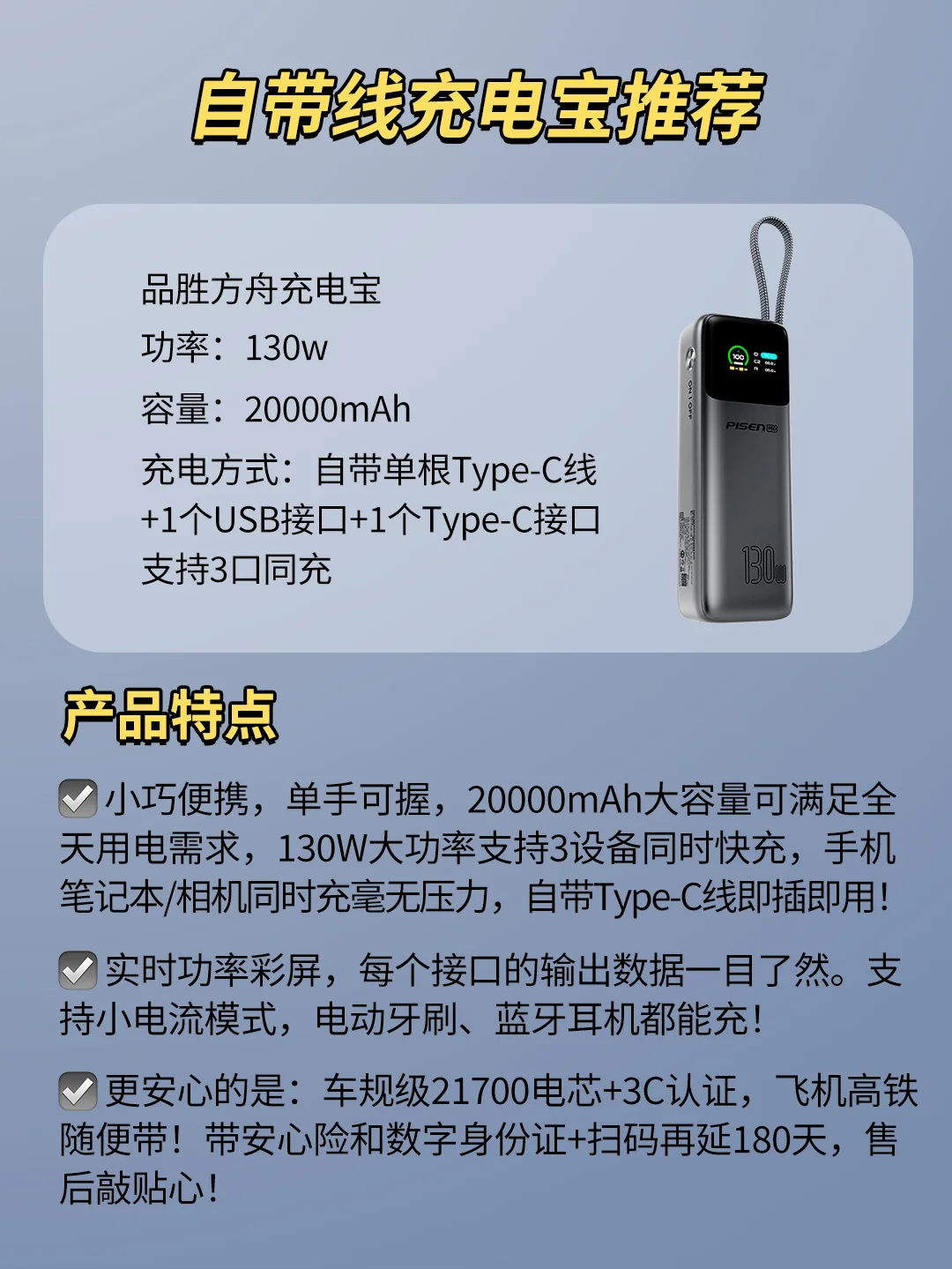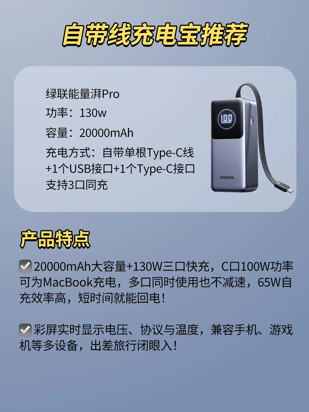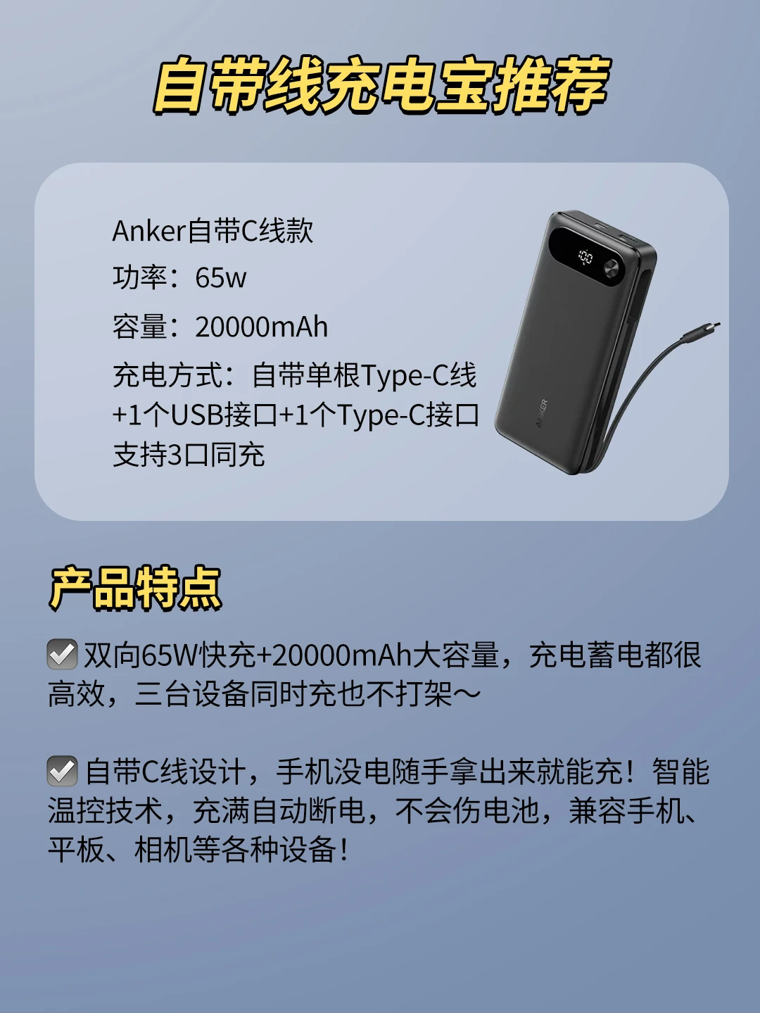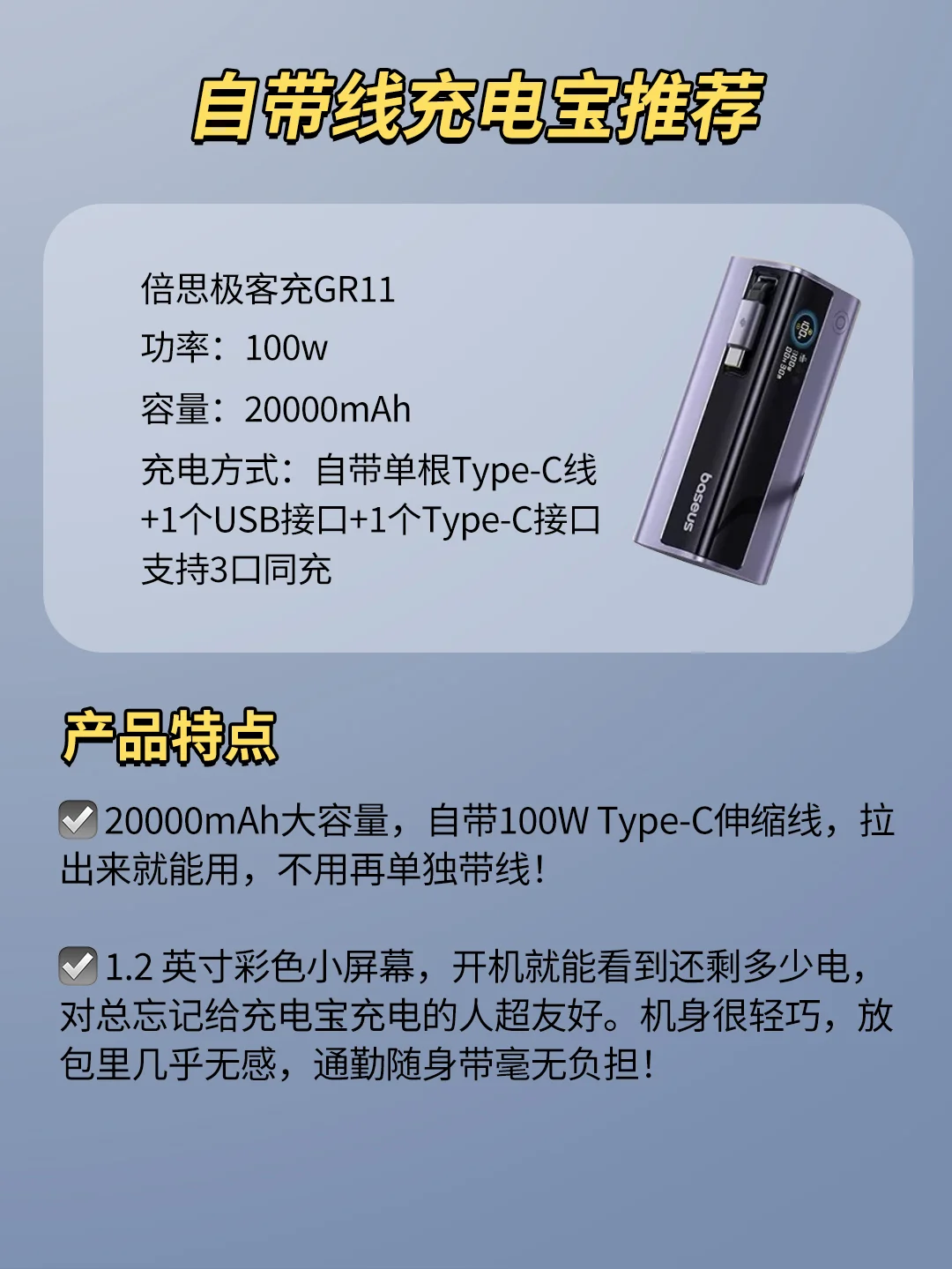姐妹们,挑选充电宝别再被参数劝退!今天给大家盘点4款20000mAh大容量自带线充电宝,出门旅行/通勤出差再也不用担心手机没电啦!