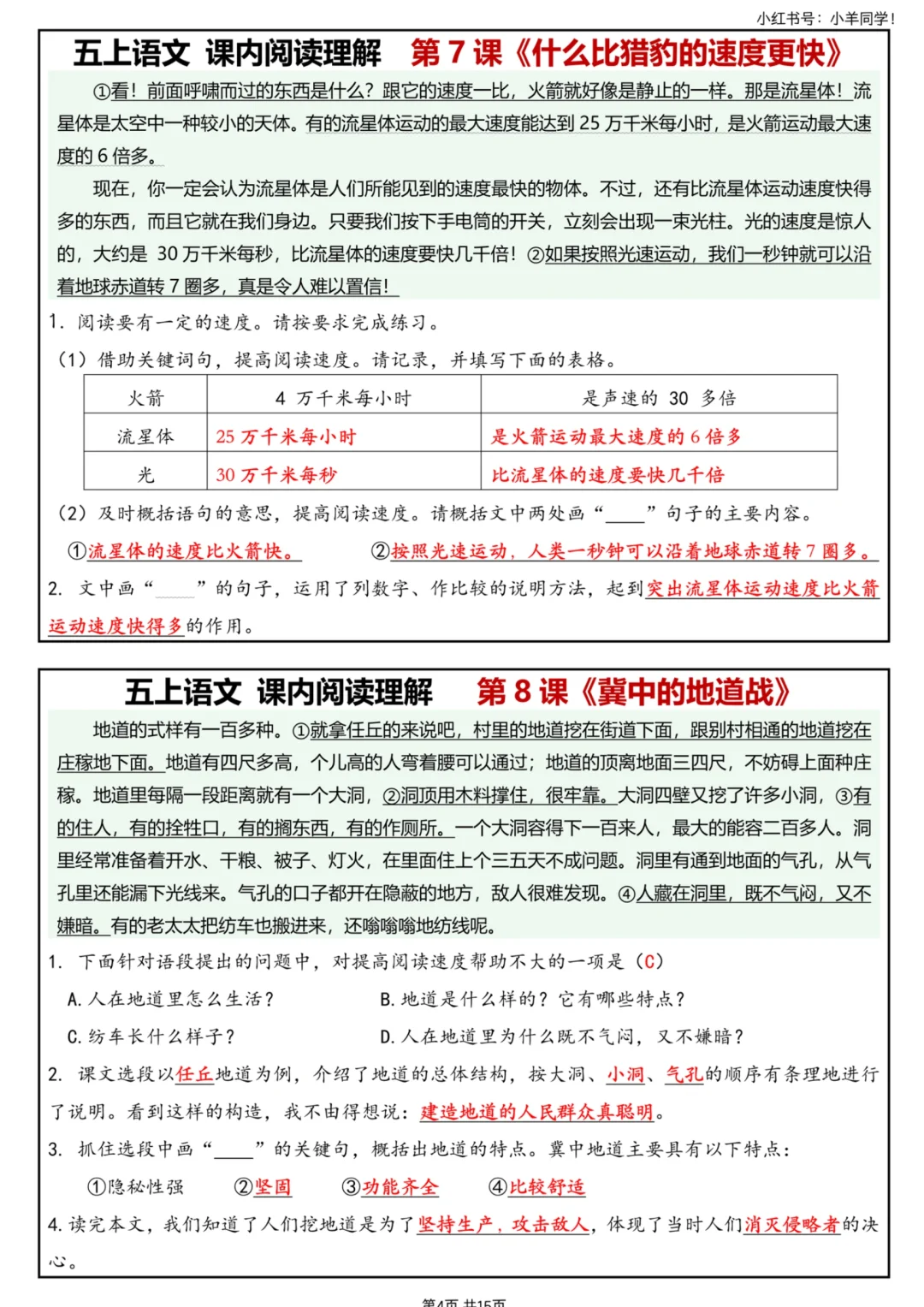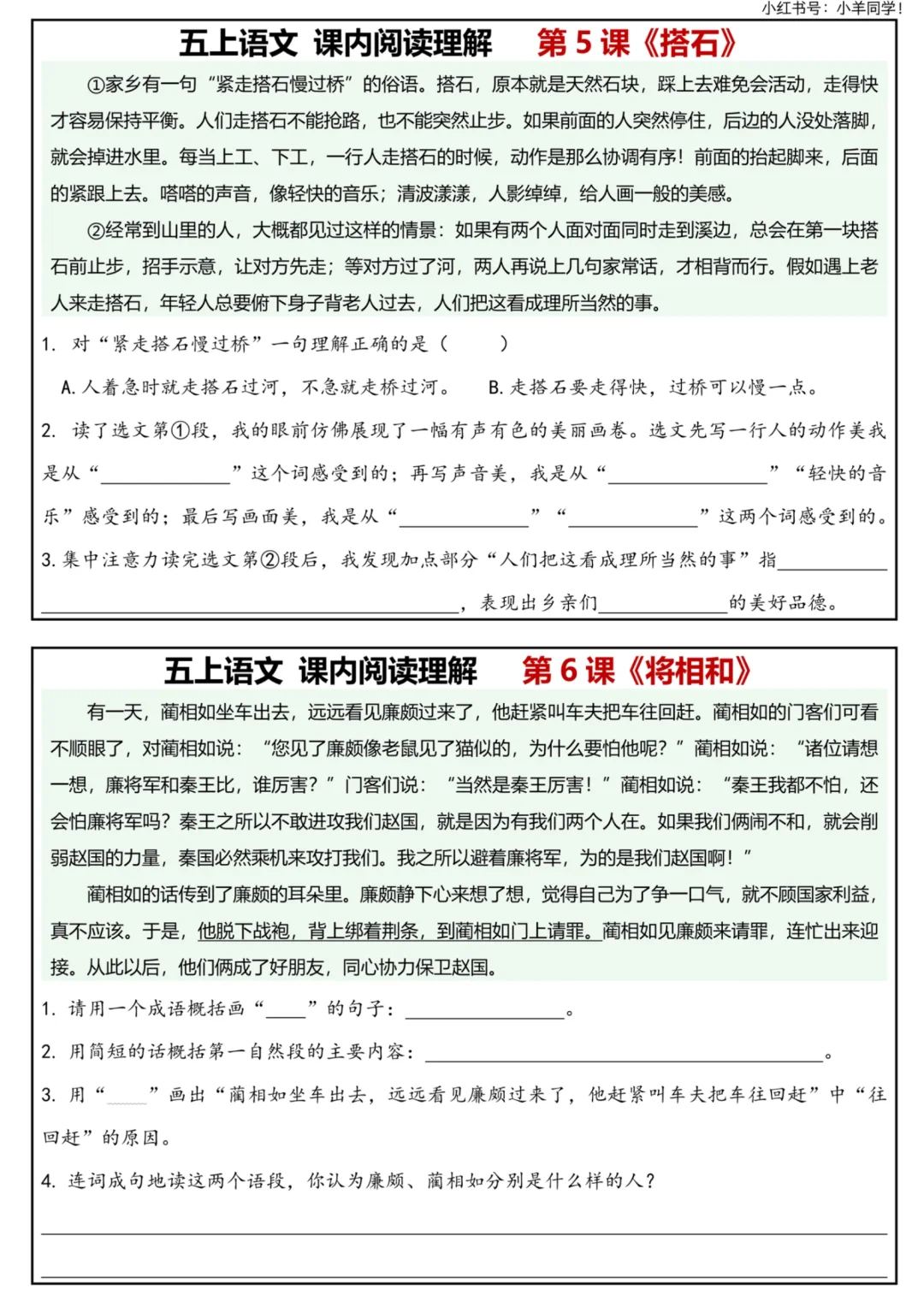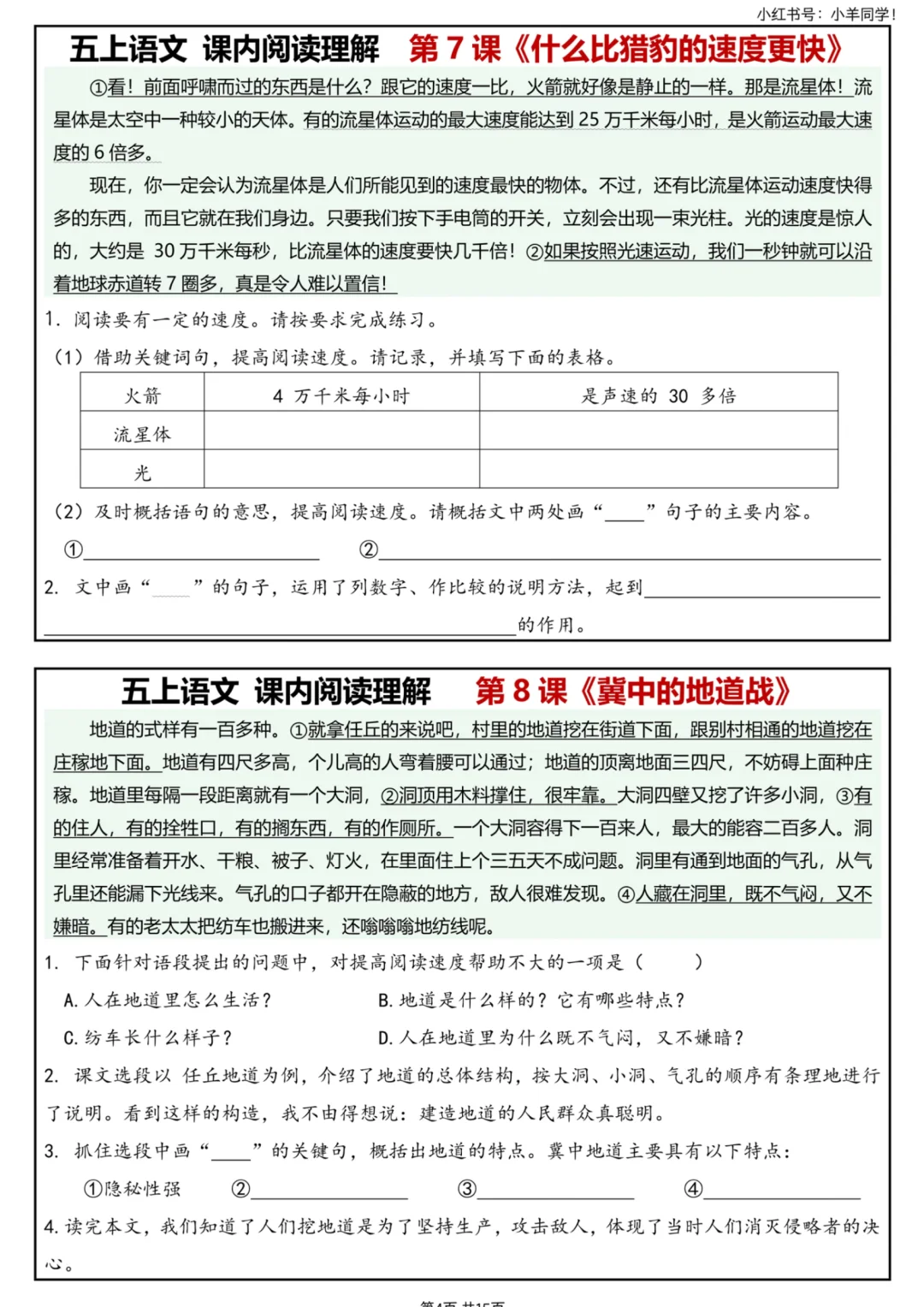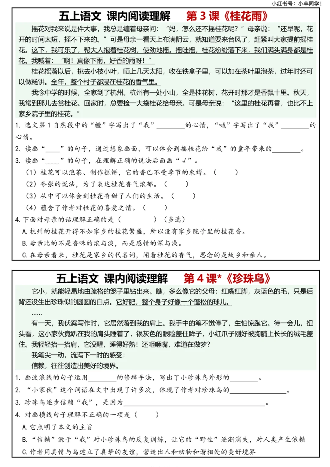🔥五上语文|1-26课课内阅读理解全套搞定!