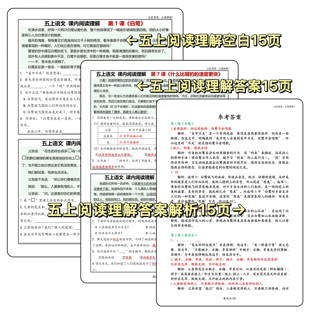 🔥五年级家长必看!上册语文课内阅读理解全套解决方案来啦! 📚覆盖 1-26 课,每篇课文的阅读理解都安排得明明白白! ✅ 掌握课文深度理解,巩固解题思路 ✅ 每天只需 10 分钟,孩子轻松无压力 ✅ 答案版 / 空白版 / 答案解析,3 个文件共 45 页,学习 + 练习 + 复盘一步到位 🌟 不止是刷题!还能帮孩子: → 吃透课文考点 → 养成高效阅读习惯 → 积累答题技巧,考试不慌 💯 内容精炼不拖沓,专为五年级孩子量身打造~家长们赶紧给孩子安排上,语文阅读理解再也不用愁!