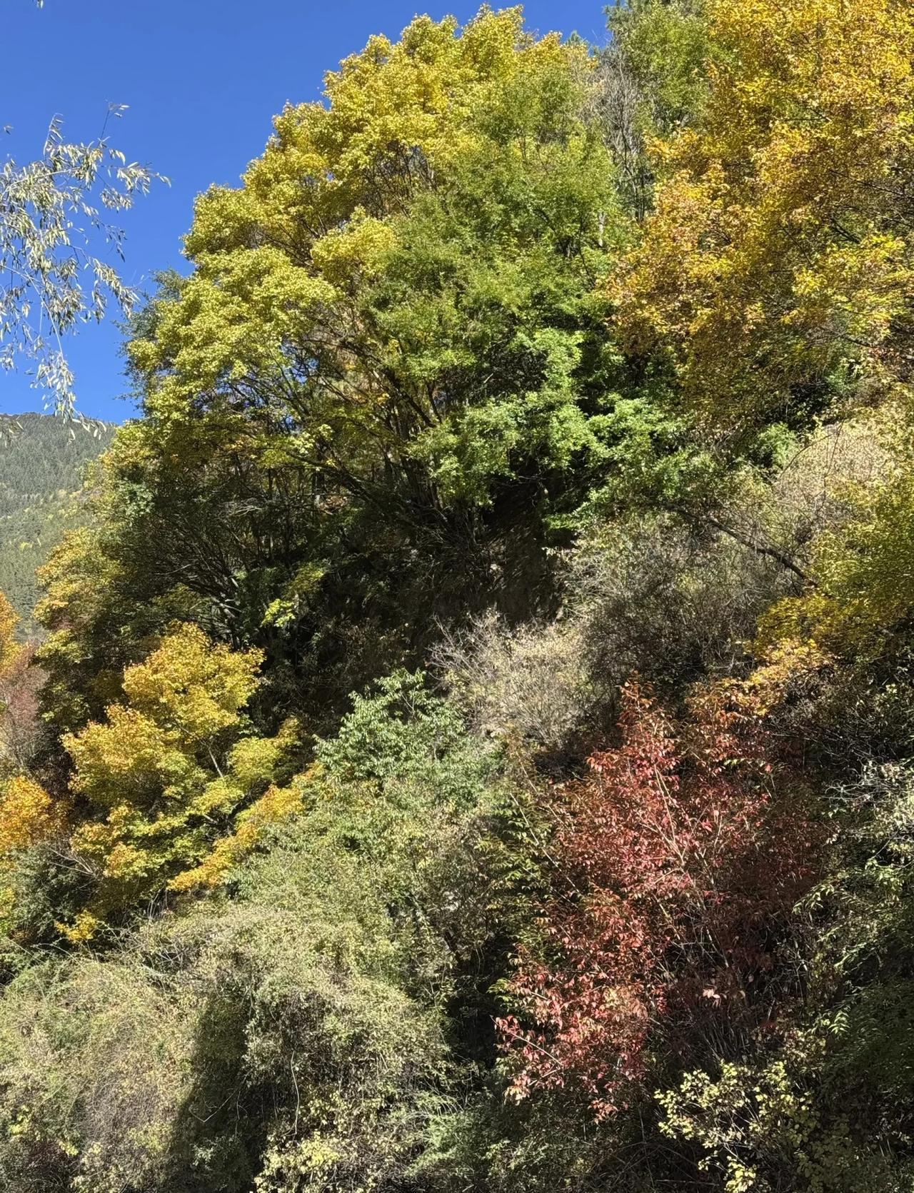米亚罗|二古溪的网红树人一点也不多 11.5号去的 去的时候如图6外面有一点红 从里面看如图1-5还是绿的 自驾把车停在前面500米的观景台再走下来 当天天气十分晴朗 ☀️ 自驾从毕棚沟出来往米亚罗方向的高速全是大片彩林 正值观赏期 最近一周都很漂亮 如果遇上晴天那会是更美的风景 秋天去看彩林 彩林 留住秋天的一百种方式 徒步踏秋去 米亚罗 米亚罗彩林 二古溪 川西美景 川西旅游