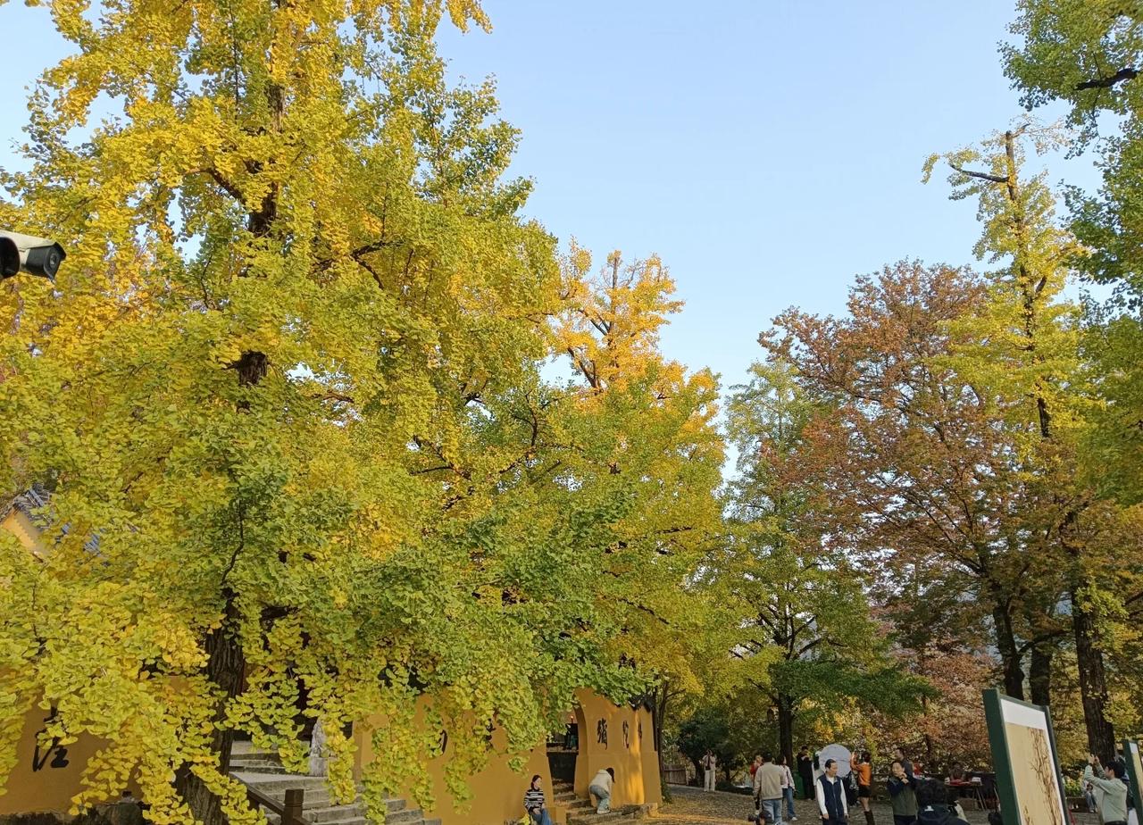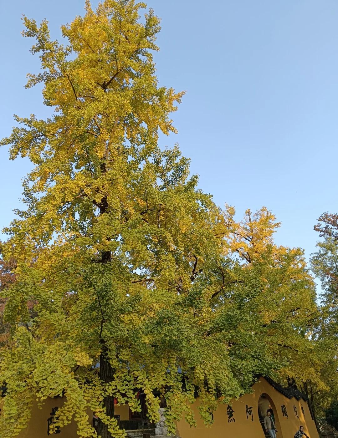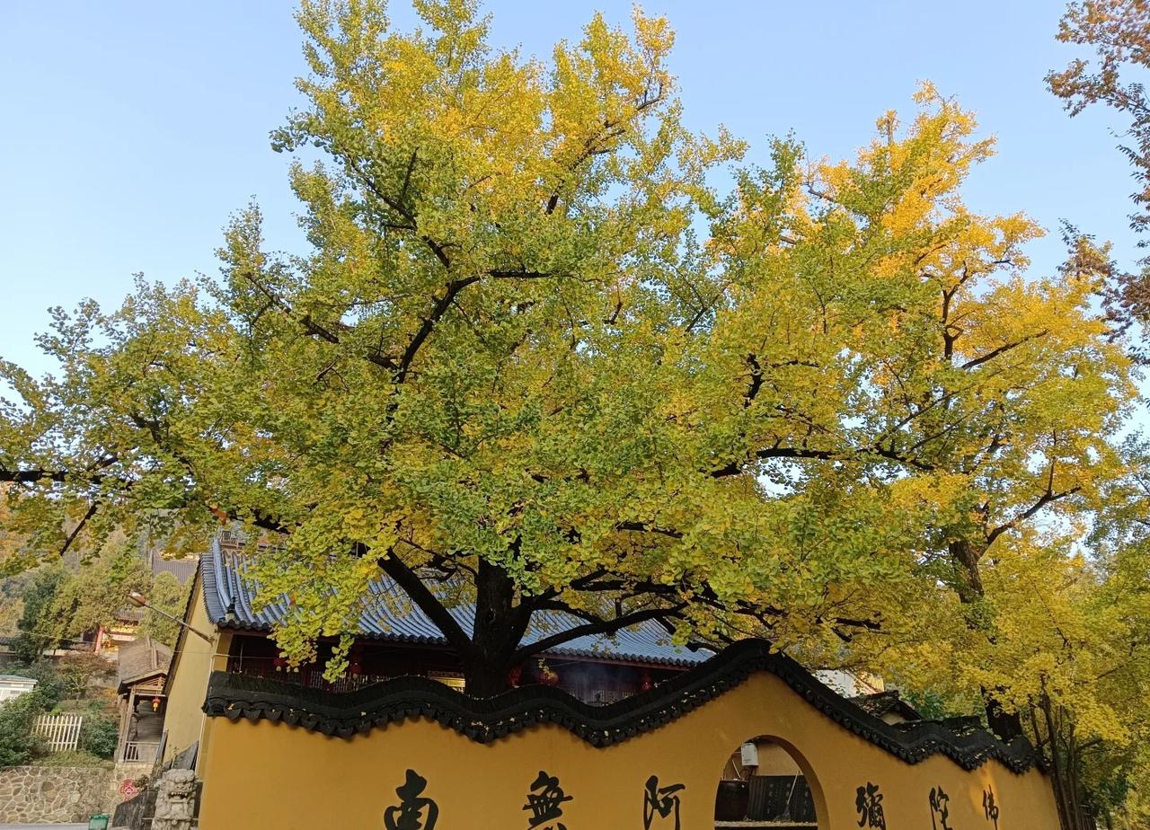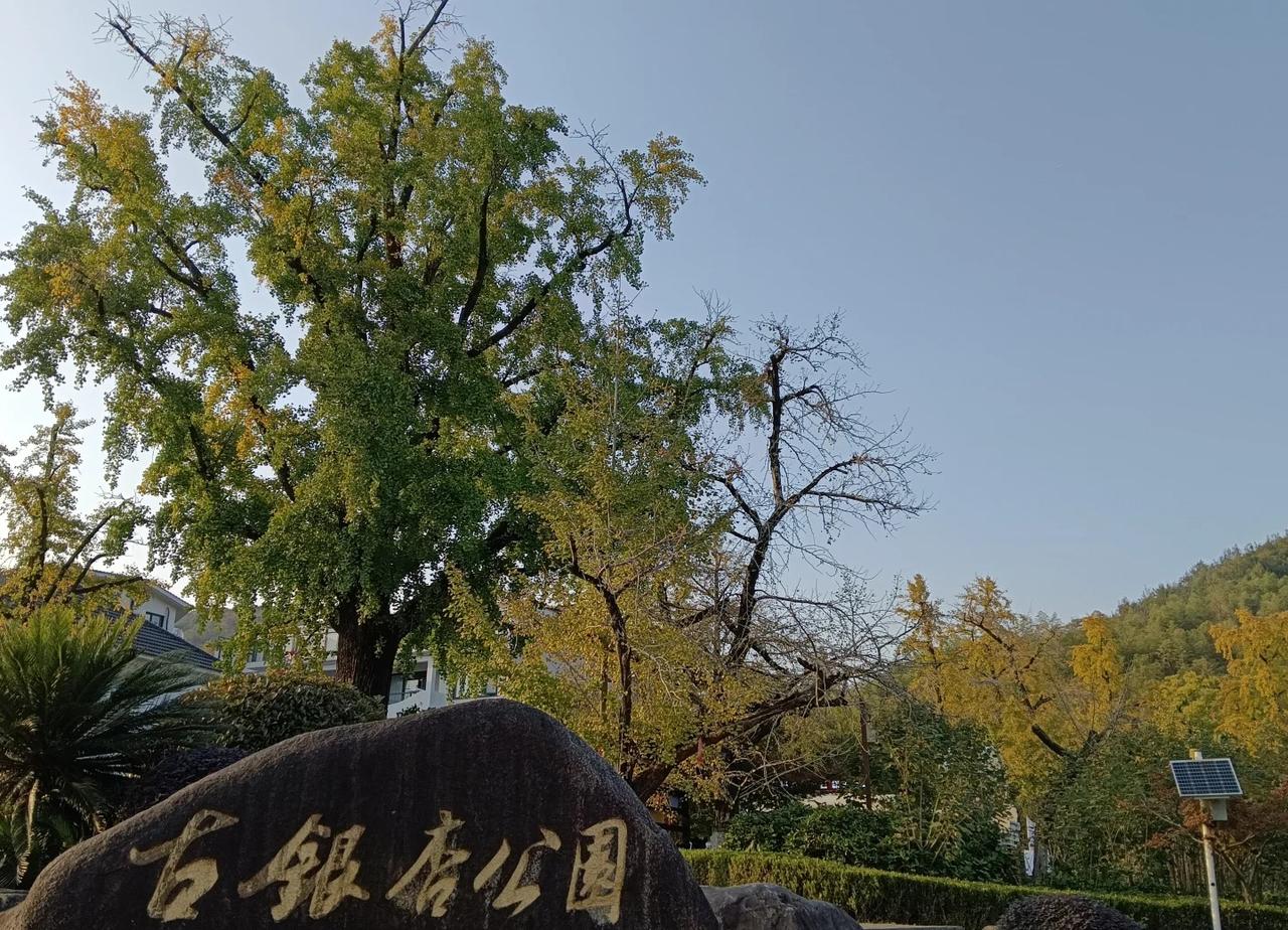 第五站:八都岕 昨天游览人气不是很旺的濮院时尚古镇,在景区内寺湾街上的宋宴餐厅午餐后,原打算下午去当地羊毛衫市场逛逛,两人又觉得也没买啥的欲望,便决定驾车回家,中途停留长兴县八都岕,回到常州大约晚上七点,已是万家灯火。八都岕地形属天目山余脉构成的三面环山峡谷,森林覆盖率超90%,一条12.5公里长的道路将峡谷中的五个自然村落连城一线,两边遍布银杏树,以“十里银杏长廊”闻名。现存3万余株原生银杏树,百年以上古银杏3500多株。深秋时节,黄叶飘落织就“黄金地毯”,形成金色景观带。相传当年刘秀尚未称帝时,分别在煤山白岘、槐坎等地与王莽追兵周旋,东躲西藏,这里是他第八次躲藏的地方,因此称为“八躲”,久而久之,成了“八都”,由此得名。我们驾车游览了古银杏公园和空王教寺两个景点。银杏公园有一株树龄1300余年的“银杏王”,高30余米,胸围达4米,只开花,不结果。周围的房前屋后分布着一百多株百年以上古银杏树,形成“村在林中,林在村中”的独特格局。空王教寺旧名天居寺,据传是在南朝陈武帝陈霸先故宅基础上兴建的,曾为唐代高僧皎然修行地。1391年,明初迁建并更名为空王教寺,民国时期在原关帝庙旧址重建,寺内仍悬挂着近代书画大师吴昌硕为关帝庙题写的“志在春秋”匾额。寺旁银杏环绕,有一株树龄1500余年的“银杏皇后”被视为这段历史的见证。