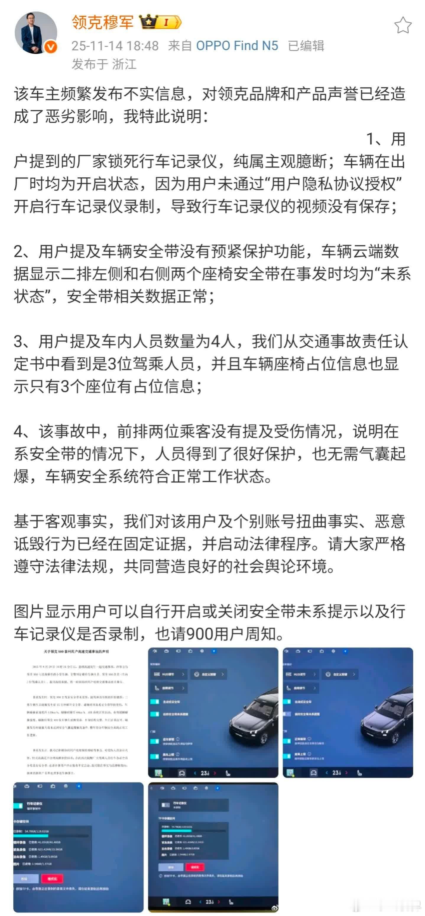 领克900车主称事故后安全带未锁死致母亲九级伤残!官方回应:该车主频繁发布不实信