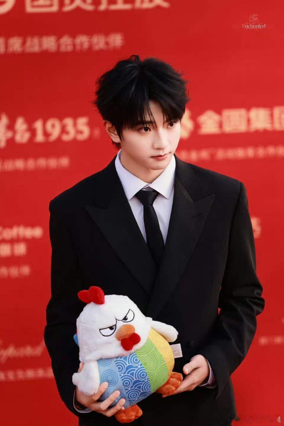 这身黑色丝绒西装简直是为他量身定制!生图里面料光泽度绝美,剪裁完美展现优越头身比。十八岁初登金鸡红毯就有这般表现力,时尚圈预备顶流没跑了!